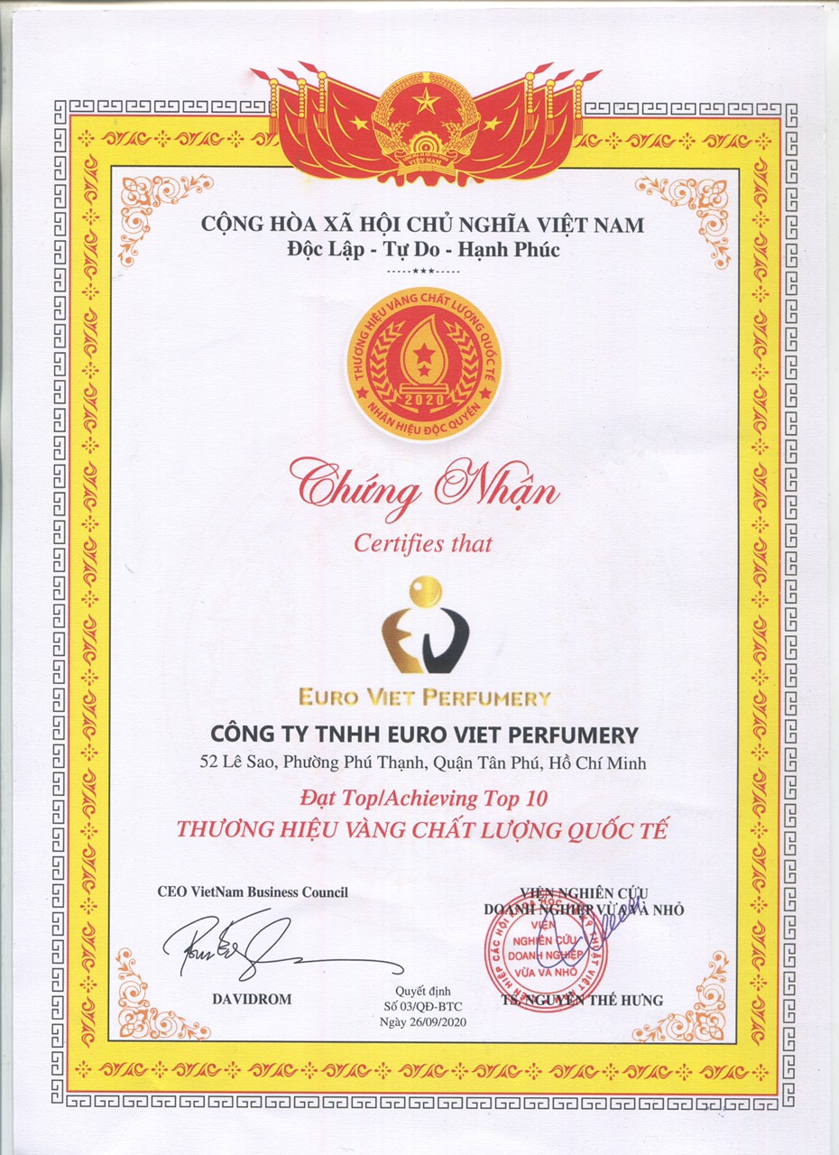 Mua tại TiktokCAM KẾT HÀNG CHÍNH HÃNG 100% TỪ CÔNG TY SX-TM-XNK NƯỚC HOA EURO VIET CAM KẾT HÀNG CHÍNH HÃNG 100%!!! THÔNG TIN THƯƠNG HIỆU Thương hiệu: Euro Viet Perfumery Nơi sản xuất: Việt Nam Dung tích: 50ml Hạn sử dụng: 03 năm Thông tin ngày sản xuất: xem trên bao bì