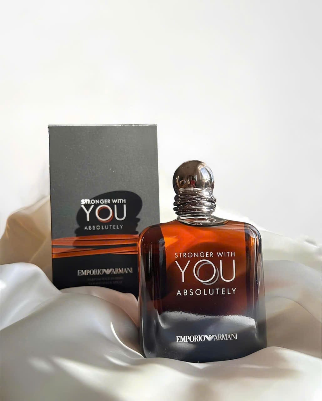 Ở Giorgio Armani Stronger With You Absolutely Parfum vẫn là hương hạt Dẻ nướng được bao bọc bên ngoài một lớp Vanilla ngọt dịu, Stronger With You Absolutely là một loại nước hoa nam tính gây nghiện, lấy cảm hứng từ sức mạnh của tình yêu tuyệt đối. Mùi hương mạnh mẽ và gợi cảm này được tăng cường bởi một hợp hương rum mới lạ, trong khi hoa oải hương có nguồn gốc bền vững ở Pháp được tăng cường không thể cưỡng lại với các khía cạnh trái cây và rượu. Vani ấm áp, được thu hoạch ở Madagascar trong khi hỗ trợ các cộng đồng địa phương, và gỗ tuyết tùng hun khói, được chiết xuất cẩn thận ở Virginia, Hoa Kỳ, tạo nên mùi hương mạnh mẽ này.