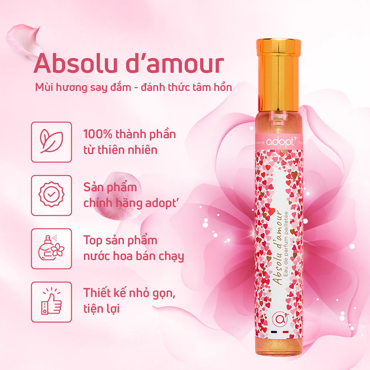 ✨Nước hoa nữ adopt Absolu D'amour hương hoa hồng trẻ trung năng động dung tích 30ml lưu hương 6h-8h