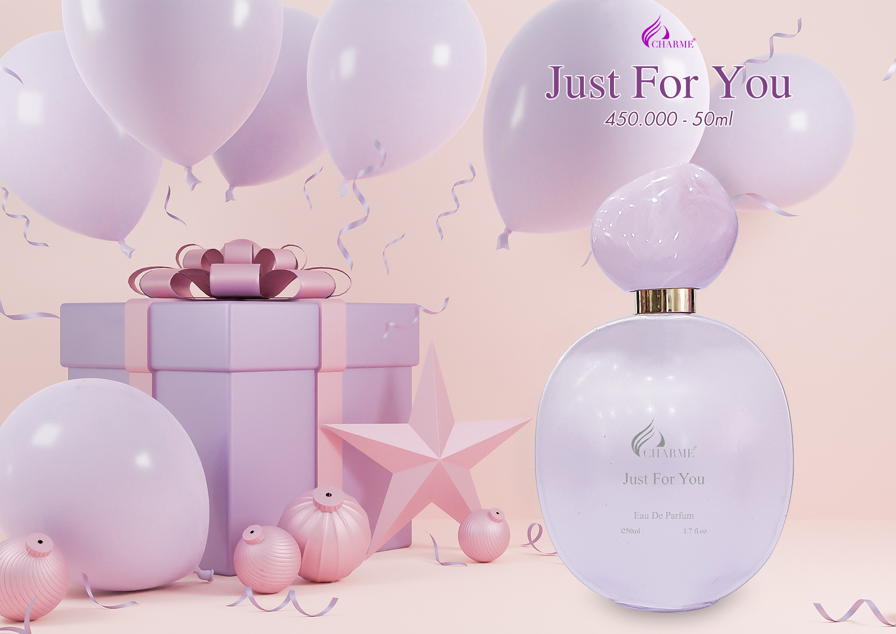 Với thiết kế xinh xắn đáng yêu cùng mùi hương nồng nàn quyến rũ, Charme Just For You đã thu hút bởi ánh nhìn ngay từ ban đầu với vỏ chai bên ngoài được thiết kế theo phong cách quý phái sang trọng không kém phần mỹ miều. Đối với phụ nữ đang tìm kiếm một mùi thơm tươi mát và nhẹ nhàng, nhưng lại gợi cảm và gây nghiện thì Just For You là một lựa chọn tuyệt vời cho bạn.
