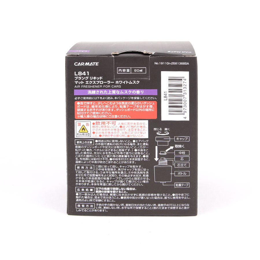 Nước hoa ô tô CARMATE BLANG LIQUID MATTE EXPLORE L841 White Musk 80ml với thiết kế thông minh giúp mùi hương xạ hương lan tỏa nhanh gấp nhiều lần trong xe bạn, cùng kiểu dáng