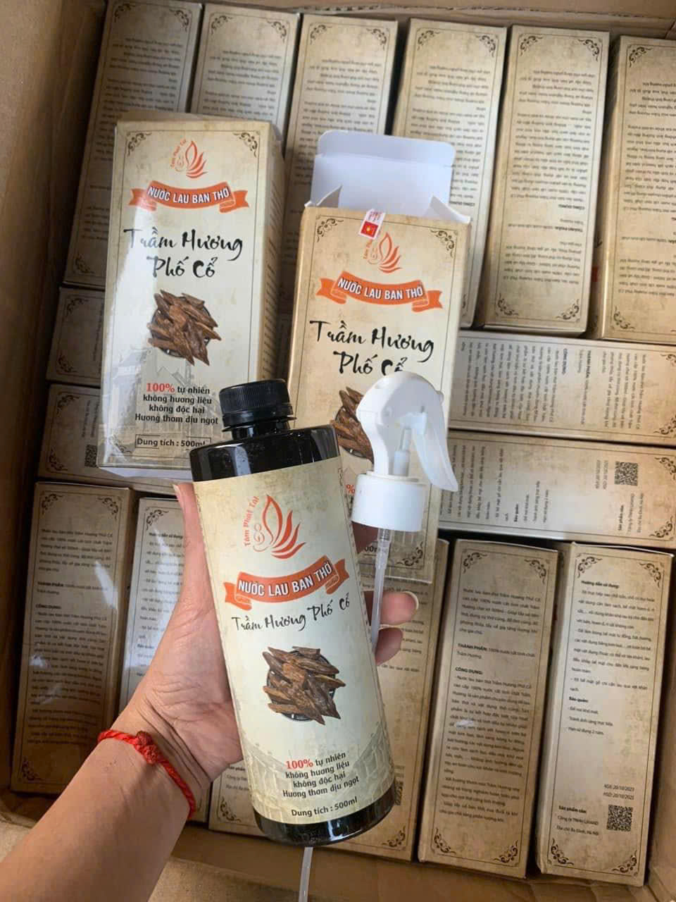 - Thành phần: Trầm hương, ngũ vị thảo mộc, nước tinh khiết.