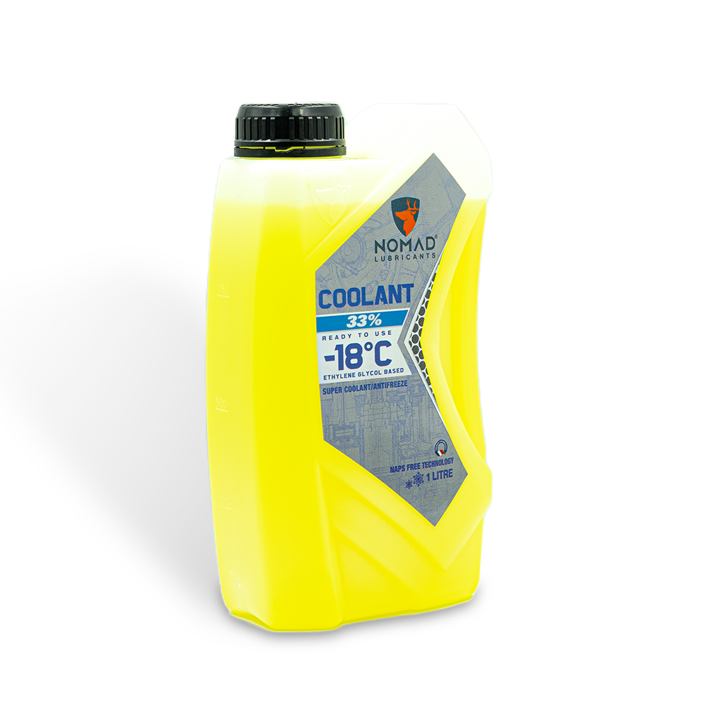 Nước làm mát NOMAD COOLANT 33% (-180C) được sản xuất từ gốc Ethylene Glycol cùng các phụ gia cao cấp, giúp nâng cao khả năng tản nhiệt cho động cơ và hạ thấp nhiệt độ đóng băng xuống -180C so với Ethylene Glycol nguyên chất (nhiệt độ đóng băng tại -120C). Đặc biệt, dung dịch làm mát NOMAD có chứa phụ gia làm giảm sự ăn mòn khi động cơ hoạt động và chống đóng cặn két nước.