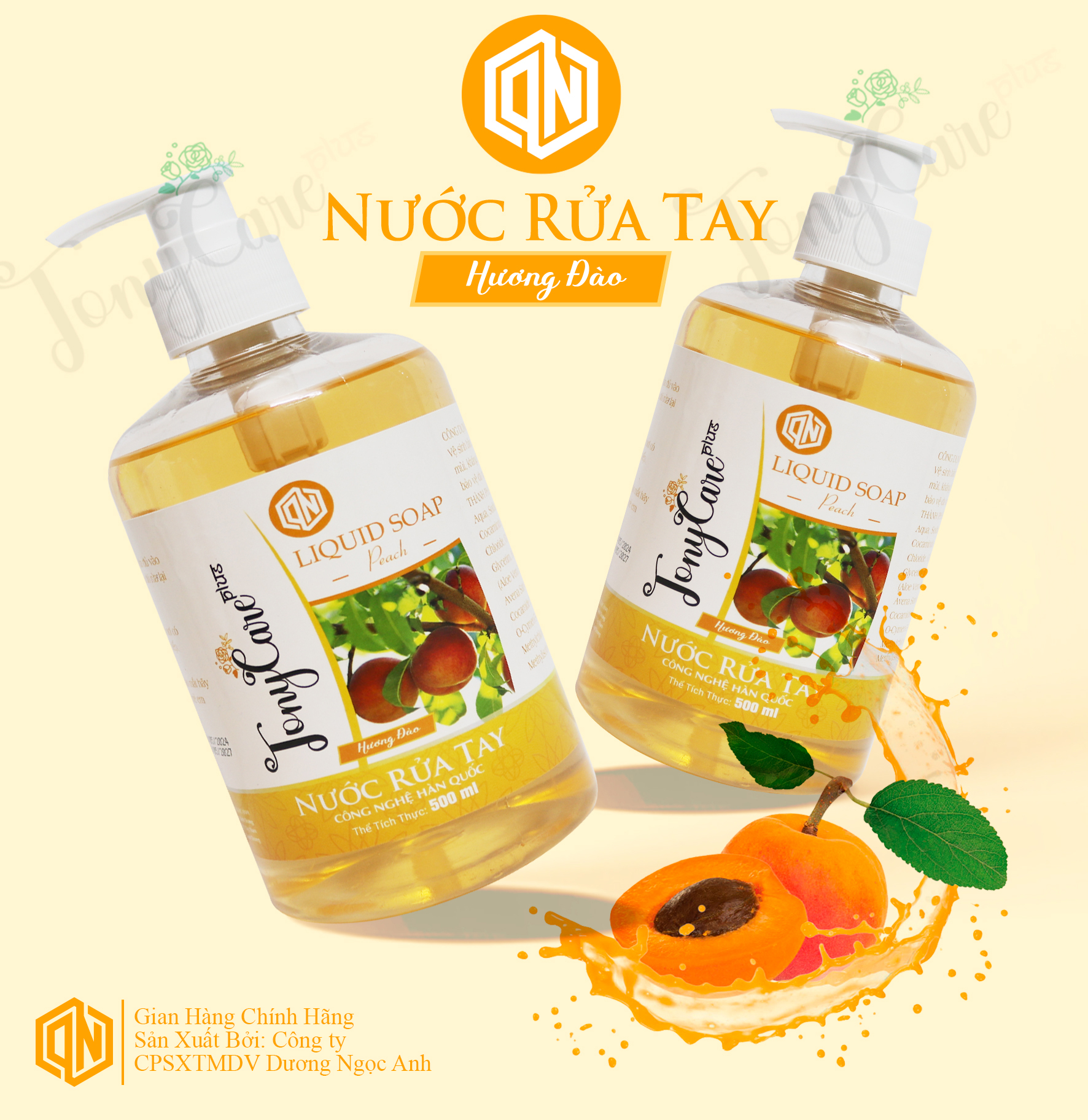 ✨Nước rửa tay Tonycare 500ml Hương Đào – Diệt khuẩn, hương tươi mát, dưỡng ẩm da tay – Chính hãng Tonycare