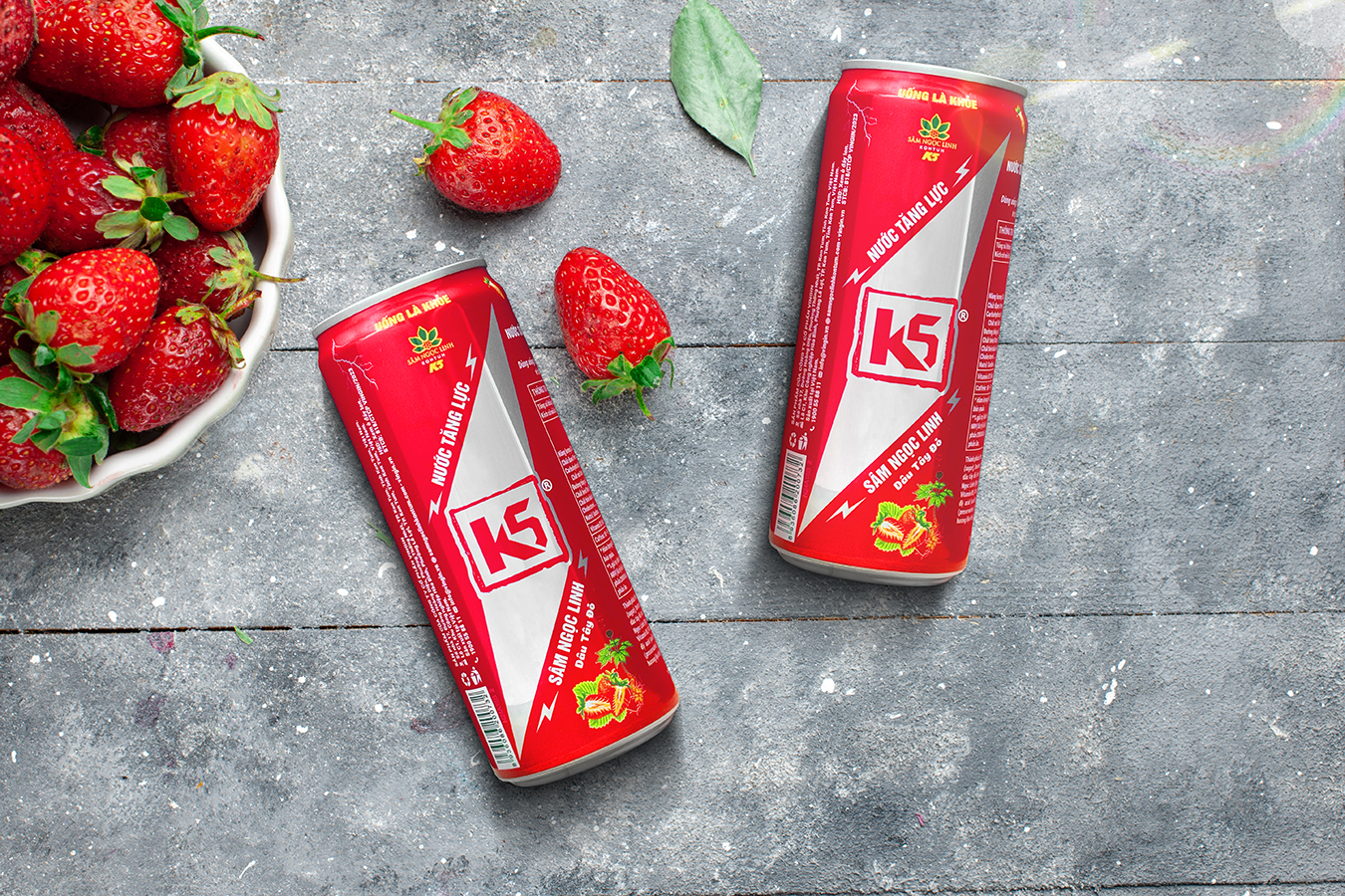 ✨Nước Tăng Lực K5 Sâm Ngọc Linh Lốc 6 Lon Vị Dâu Tây Đỏ (320ml/Lon)