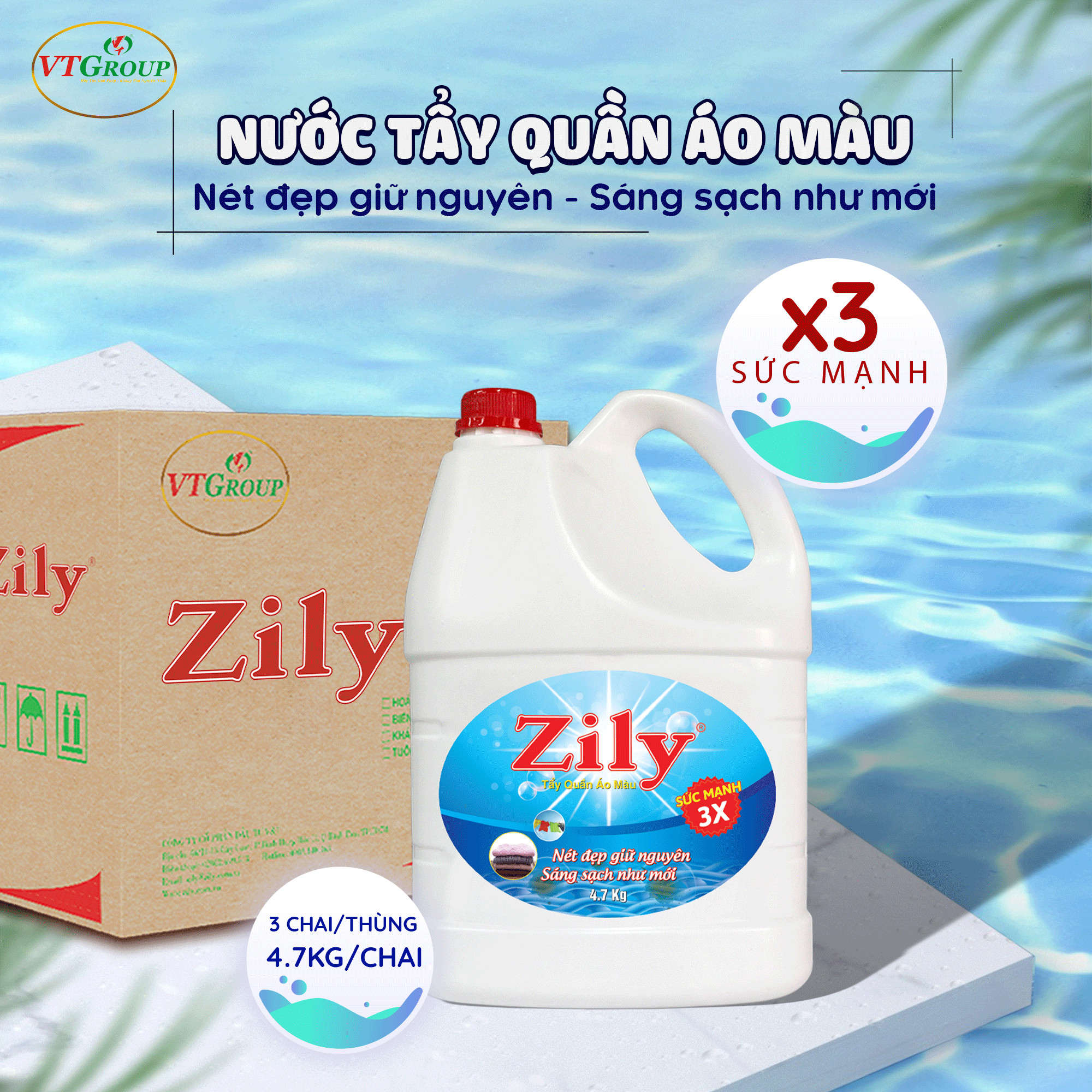 ✨Nước Tẩy Quần Áo Màu Zily Chai 4.7Kg - 3 Chai / Thùng ( Tặng 1 Chai Nước Giặt KH 3.8Kg )