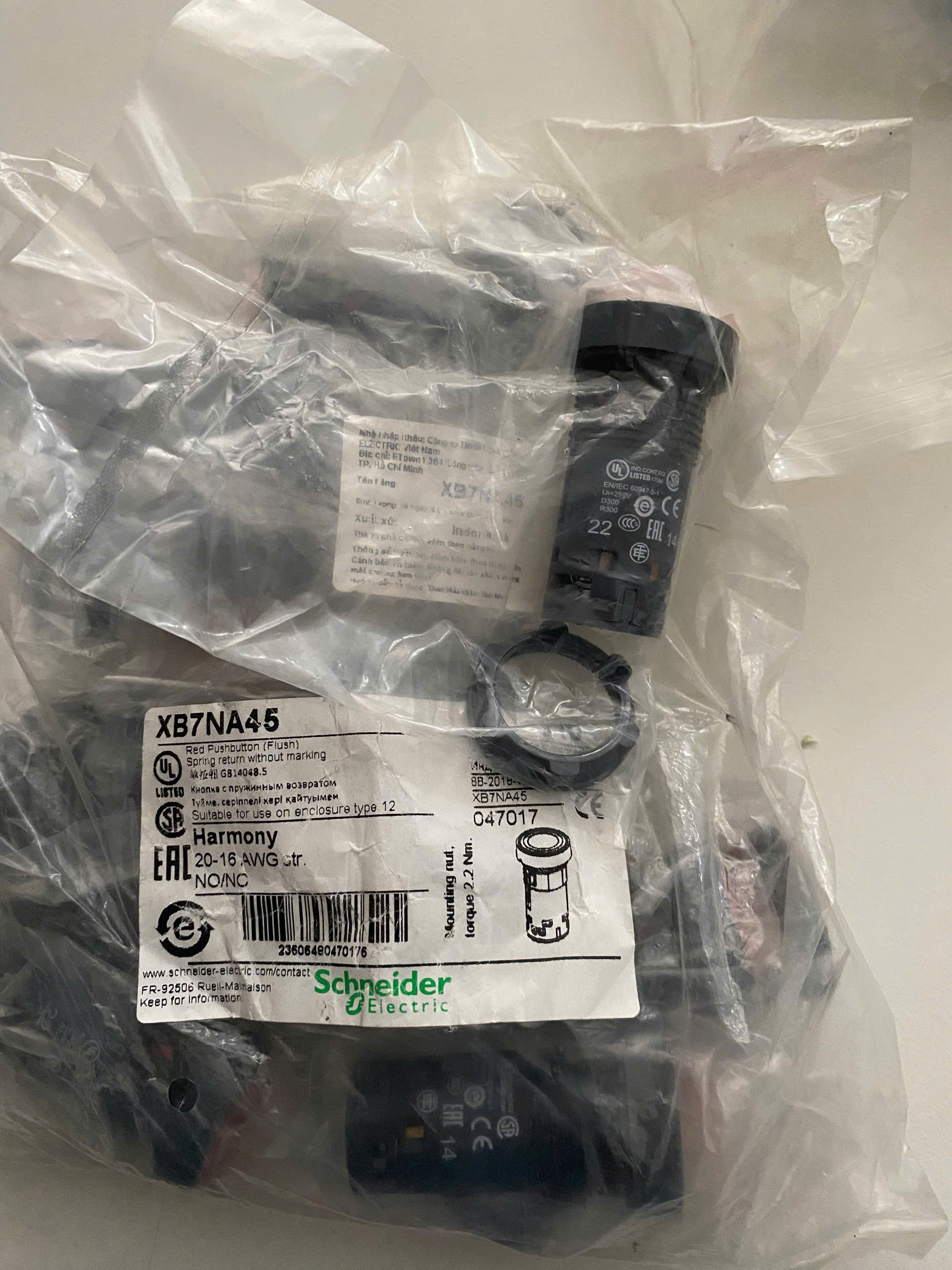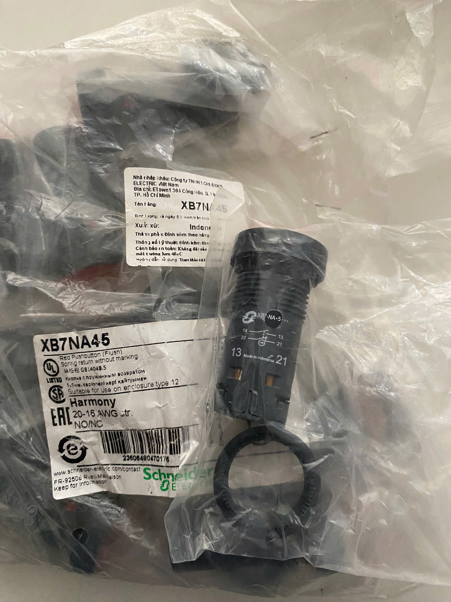 ✨Nút nhấn nhả Schneider XB7NA45, 22mm, màu đỏ, 1NO +1NC