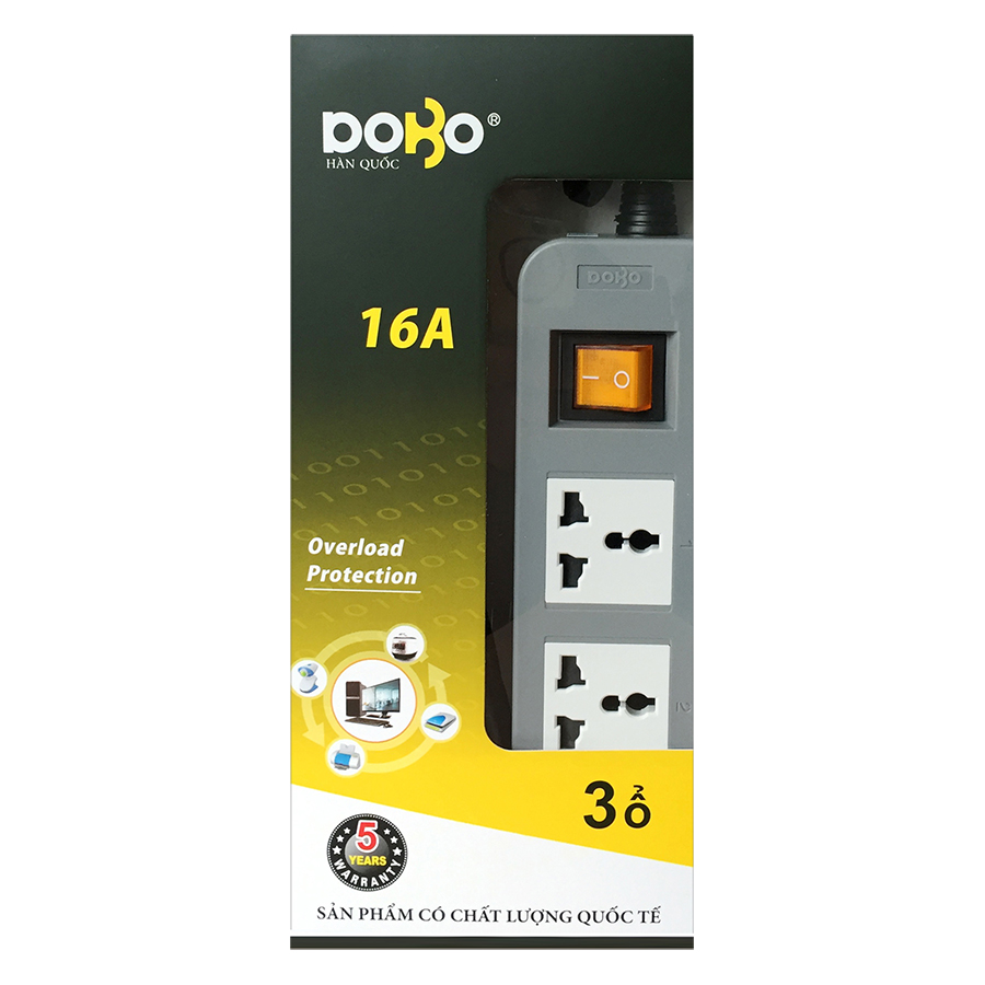 ✨Ổ Cắm Dài 5 Ổ Cắm Dobo Electric Korea (16A - 3m) - Trắng