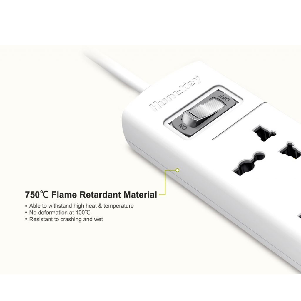 Ổ CẮM ĐIỆN THÔNG MINH ĐA NĂNG HUNTKEY SZN-507-2.1A (3M) * Thiết kế sang trọng, sản phẩm dành cho thị trường EU, Nhật Bản. * Độ dài dây cáp: 3mét * 4 ổ cắm