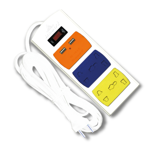 Ổ cắm đa năng cách điện bền đẹp. Chịu nhiệt, chống cháy: 750ºC Chống sét ( có dây tiếp đất) Chiều dài dây điện: 3 mét * CHI TIẾT SẢN PHẨM Chân tiếp xúc với