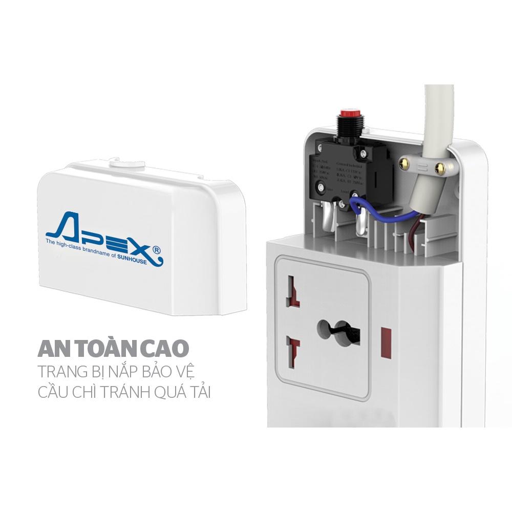 - Bảo vệ an toàn chống xung điện áp cao, xung sét. - Công tắc tích hợp rơ le chống quá tải 15A. - Ổ cắm đa năng sử dụng đồng chuyên dụng siêu đàn