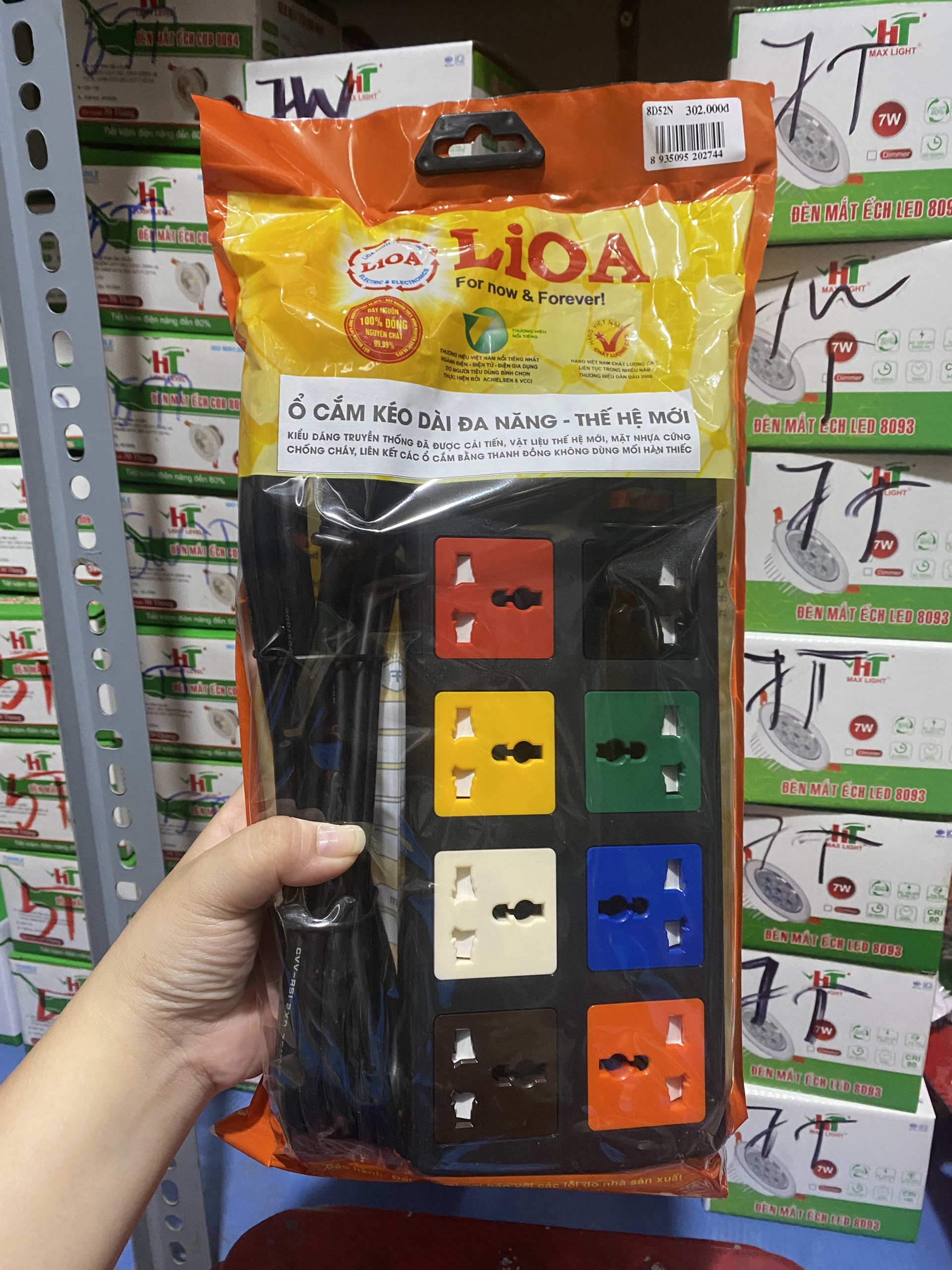 ✨Ổ Cắm Kéo Dài Đa Năng 8D Có Nắp Che Dây Lioa 8D32N (3300W)