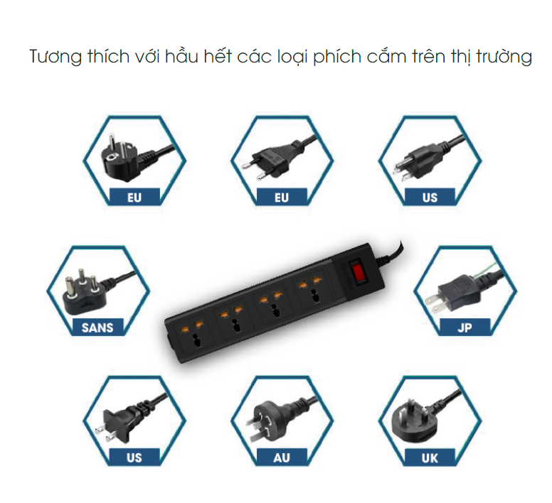 Thiết kế sang trọng với chất liệu cao cấp nhựa abs chống cháy bền bỉ Ổ cắm đa năng với 11 lổ cắm phù hợp với đa dạng các tác vụ như văn phòng, học