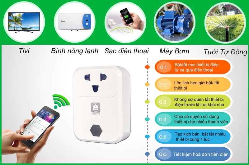 Hẹn giờ bật/ tắt hoàn toàn tự động cho các thiết bị điện như : Bình nóng lạnh, nồi nấu chậm, nồi hâm nóng thức ăn, sạc pin…