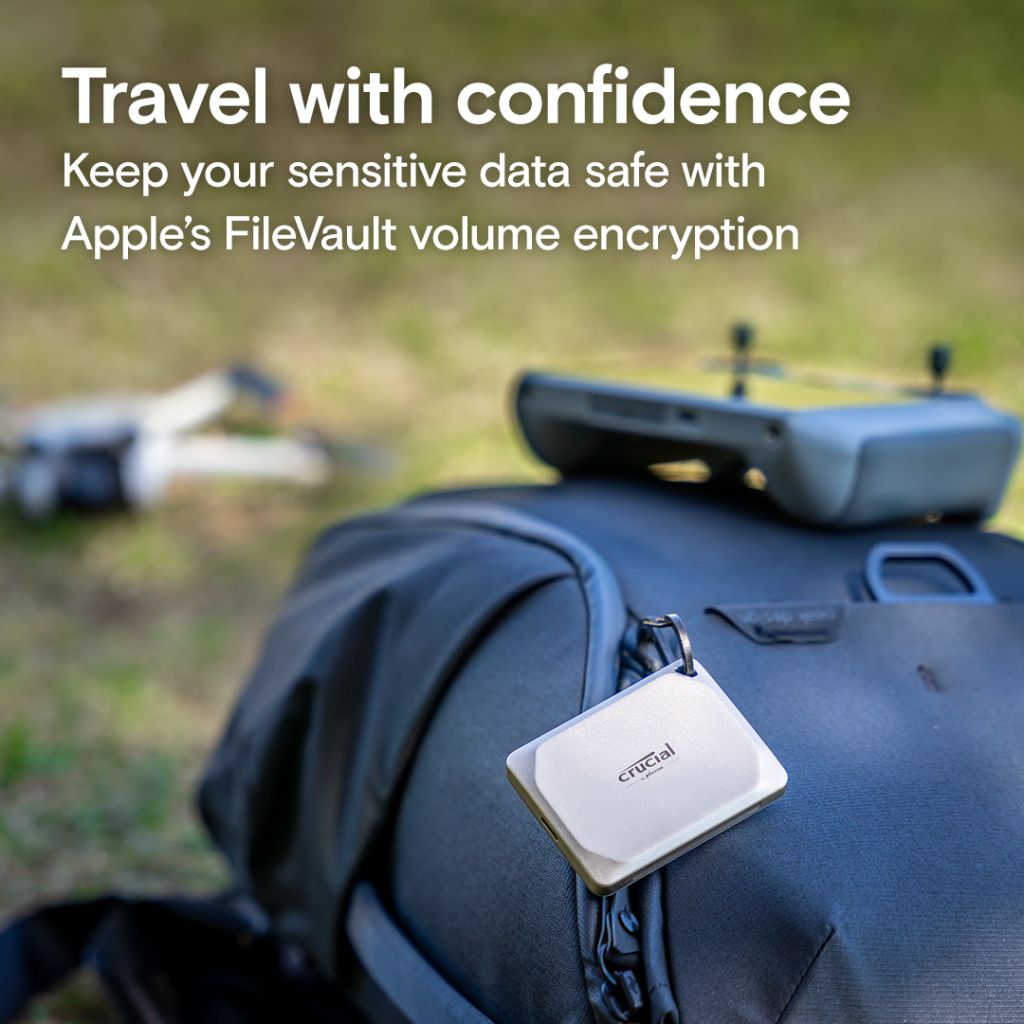 Nhà sản xuất Crucial Model CT1000X9PROMACSSD9B Chuẩn giao tiếp USB 3.2 Gen 2 Dung lượng 1TB Tốc độ đọc 1050 MB/s Tốc dộ ghi 1050 MB/s Độ bền Chống sốc, rung và rơi lên đến
