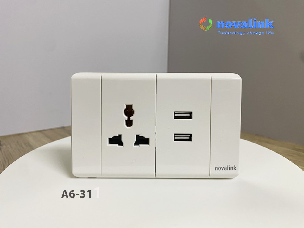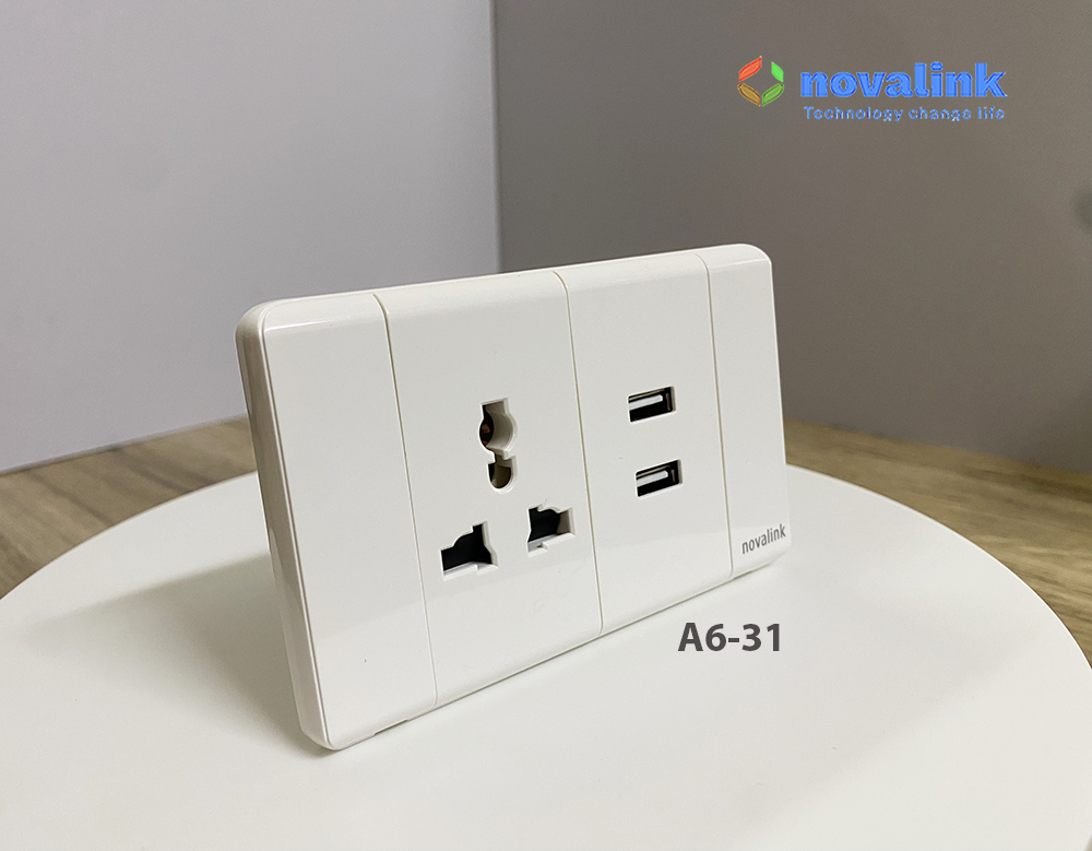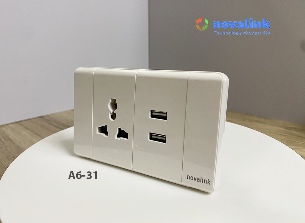 Sản phẩm Ổ Điện Kèm Ổ USB Âm Tường A6-31 Novalink