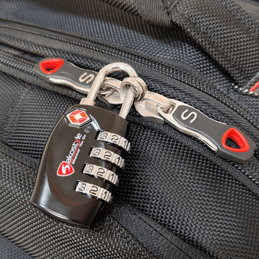 Ổ khóa số TSA Sakos tích hợp khóa số tiện lợi theo tiêu chuẩn của Tổ chức an ninh Vận chuyển Hoa Kỳ.