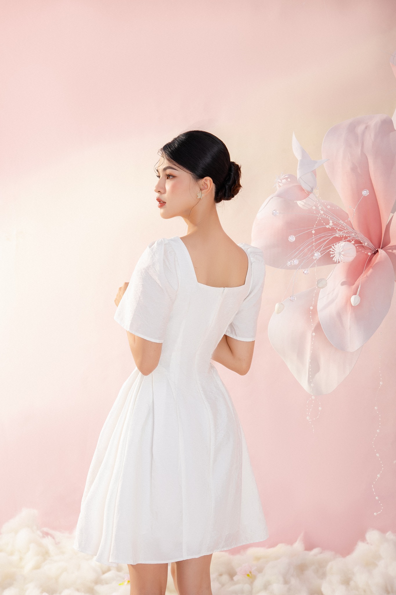 ღ THÔNG TIN SẢN PHẨM:   Tên sản phẩm: Đầm trắng xoè cổ tròn sát nách   Chất liệu: Chất gân ý   Chi tiết sản phẩm: không lót, không túi   Thông số size:
