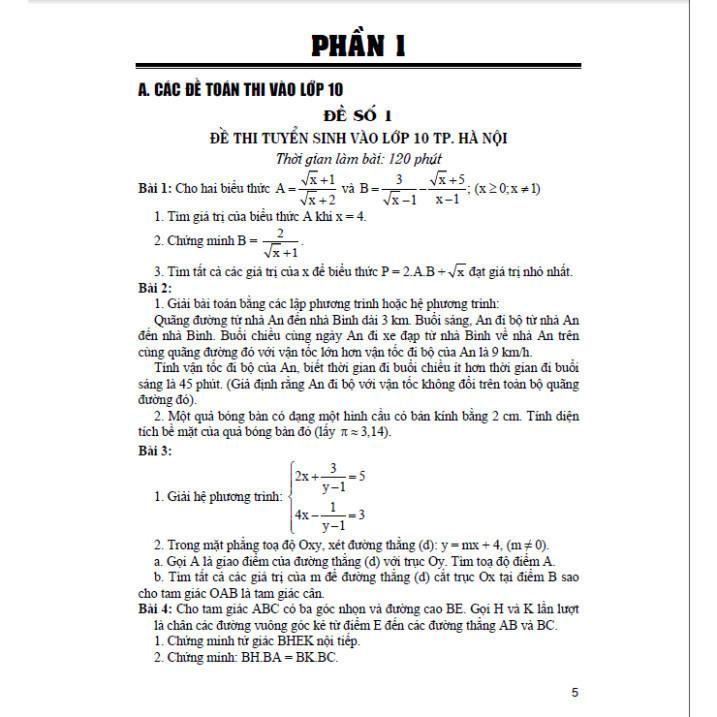 A. Các đề toán thi vào lớp 10 năm học 2020 – 2021 (Hệ đại trà)