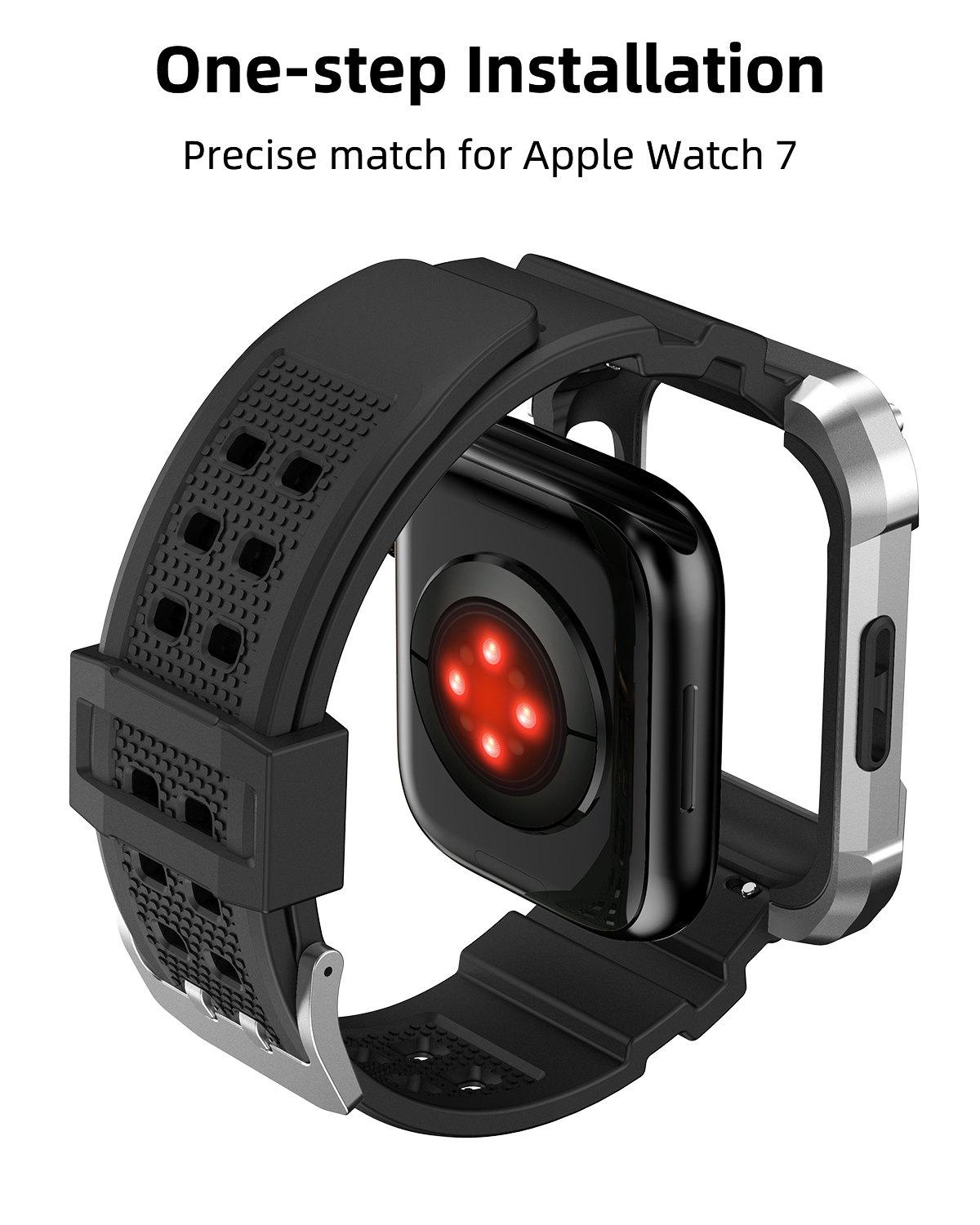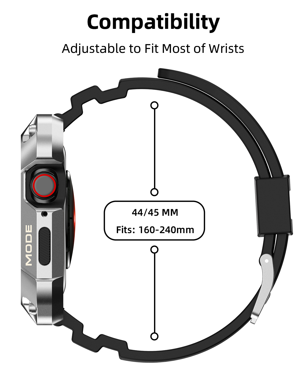 - Sản phẩm đúc nguyên khối, lỗ cắt chính xác không chi tiết thừa, vừa vặn cho Apple Watch Series 4/5/6/SE/7/8/9/SE2 Size 45mm/44mm