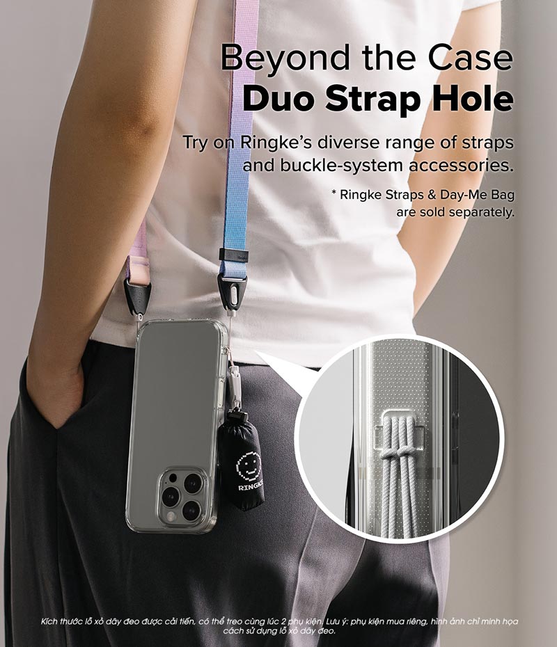 - Kích thước lỗ xỏ dây đeo cải tiến cho phép treo (móc) được 2 phụ kiện cùng lúc. Lưu ý: dây đeo được bán riêng. Hình ảnh chỉ minh họa cách sử dụng sản phẩm.