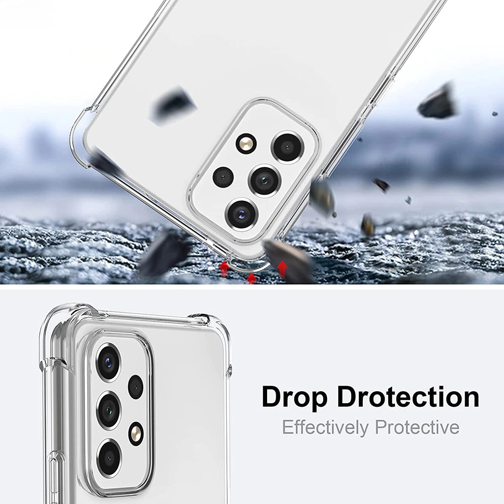 Ốp lưng silicon trong suốt chống sốc cho SAMSUNG A13 4g, A23, A33 5G, A53 5G, A73 5G Chất liệu TPU dày 0.9 mm, mềm dẻo, trong suốt, có độ đàn hồi cao, có thể bóp lại, cuộn lại mà không biến dạng. Chất liệu dày dặn hơn ốp dẻo trong suốt thường, 4 góc được làm dày hơn để chống sốc cho máy (khi rơi thường vào vị trí 4 góc), các gai chống sốc nằm phía trong ốp lưng, phần tiếp xúc với máy, giúp chống sốc khi rơi rớt, nên khi cầm tay không bị gợn