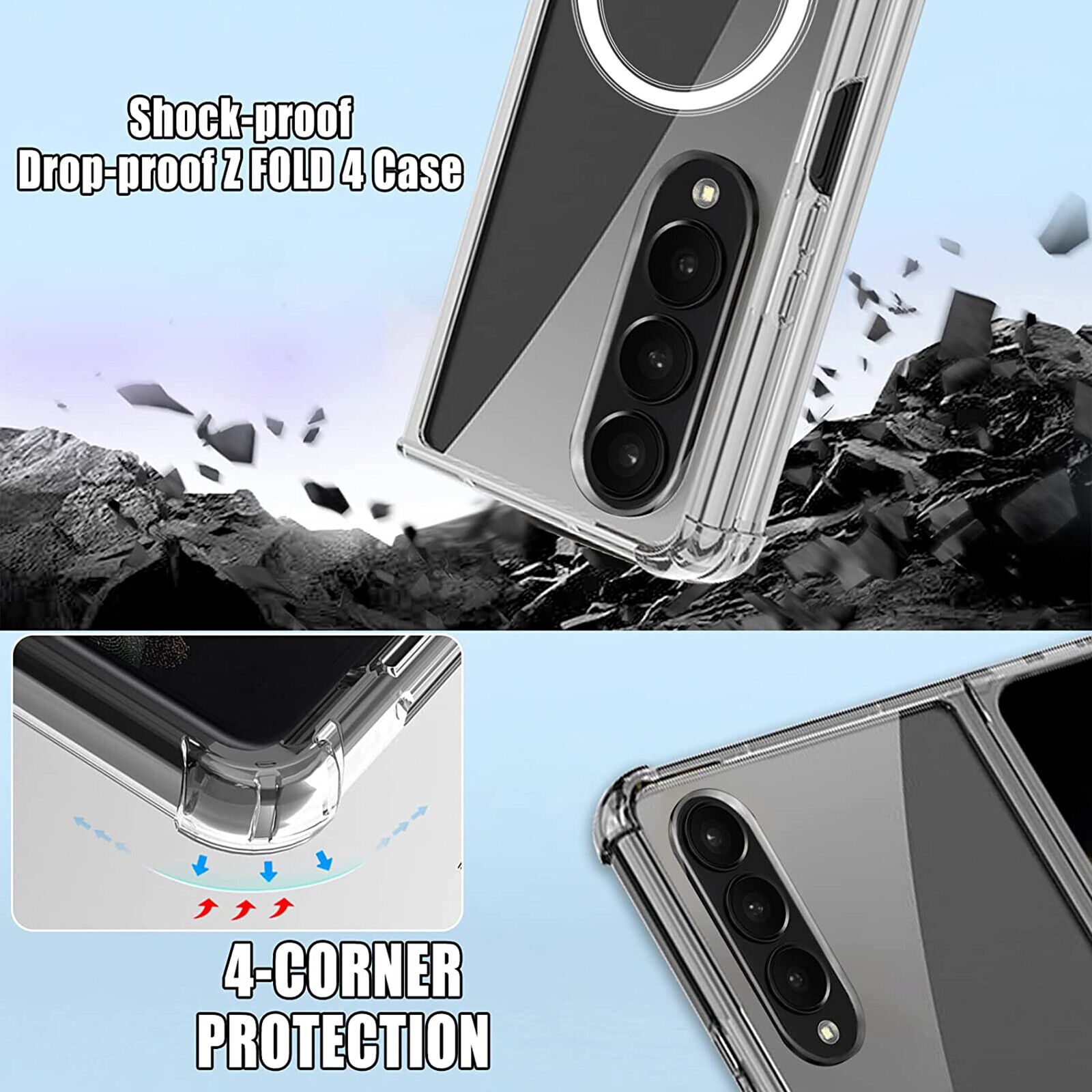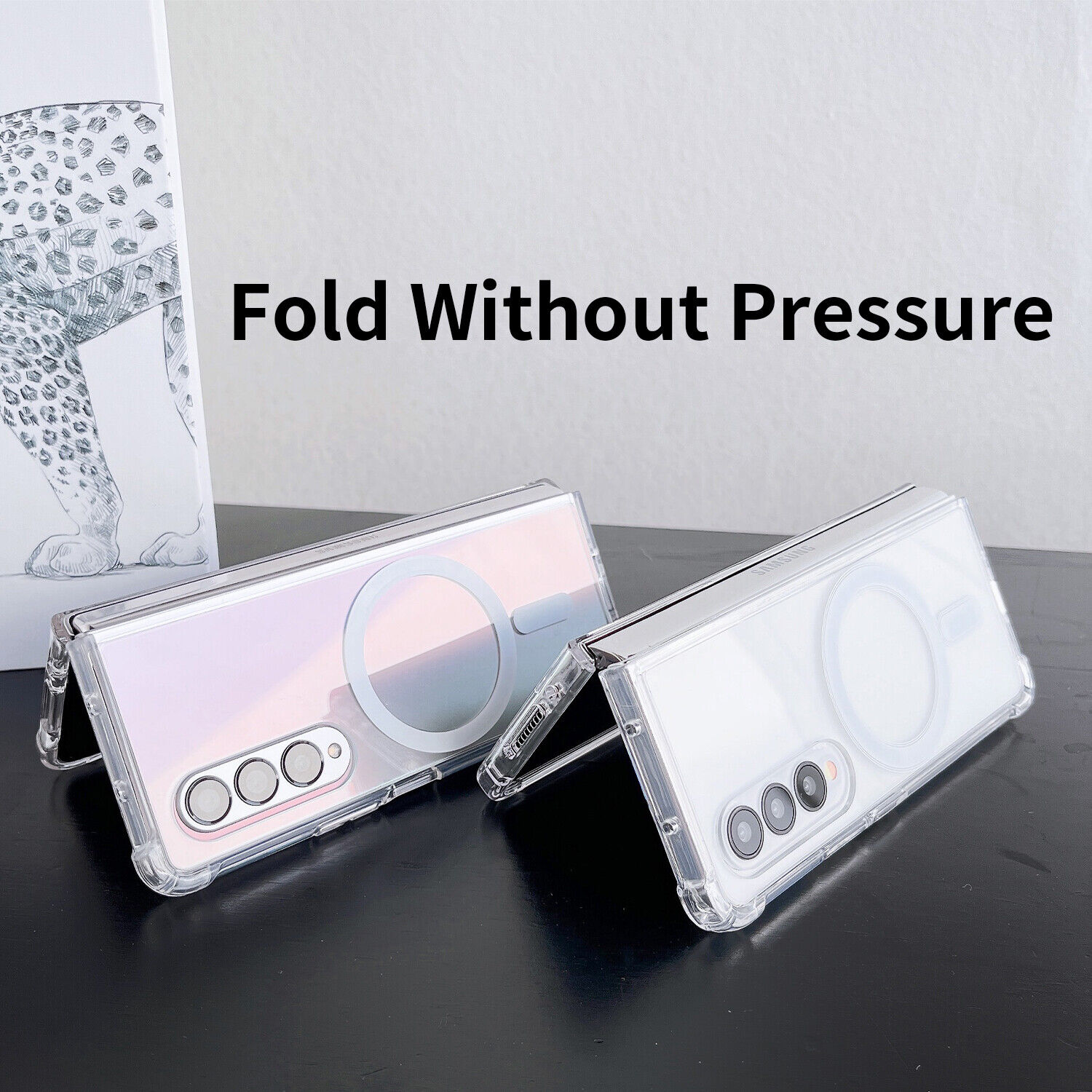 Ốp lưng chống sốc trong suốt hỗ trợ sạc Maqsafe siêu mỏng 1.5mm cho Galaxy Z Fold 3 / Z Fold 4 Hiệu Likgus Maqsafe Magetic Case với Phần viền camera được làm như một khung kim loại dày thêm 0.2mm bảo vệ camera không trầy xước khi tiếp xúc.