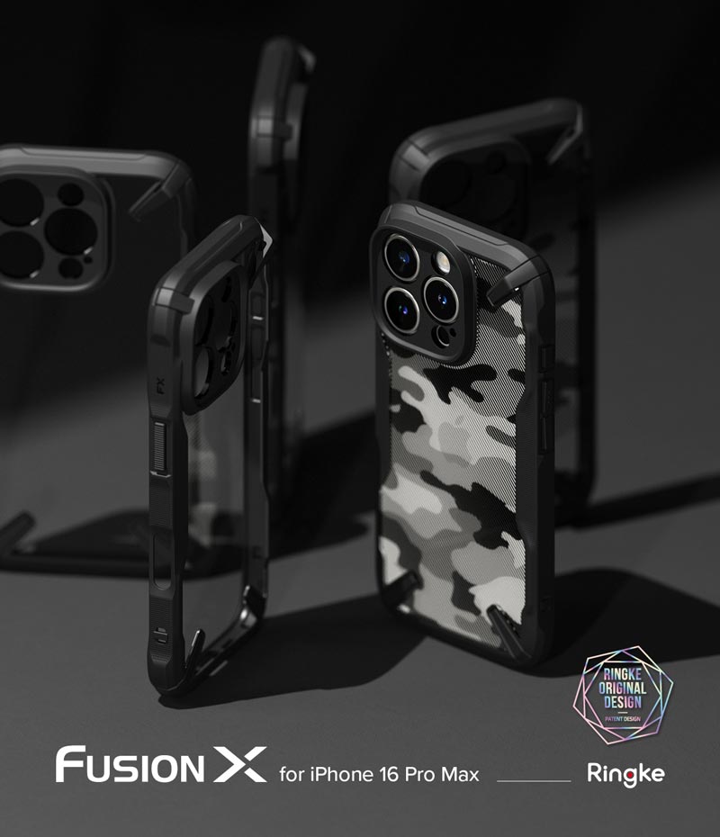 • Do thiết kế phần camera của iPhone 16/16 Plus khác với iPhone 16 Pro/16 Pro Max nên với dòng ốp Fusion X cũng có sự khác nhau ở vị trí camera. Với dòng máy iPhone 16 Pro/16 Pro Max, phần camera được thiết kế cụm nguyên khối, trong khi dòng máy iPhone 16/16 Plus thì phần camera khoét lỗ.
