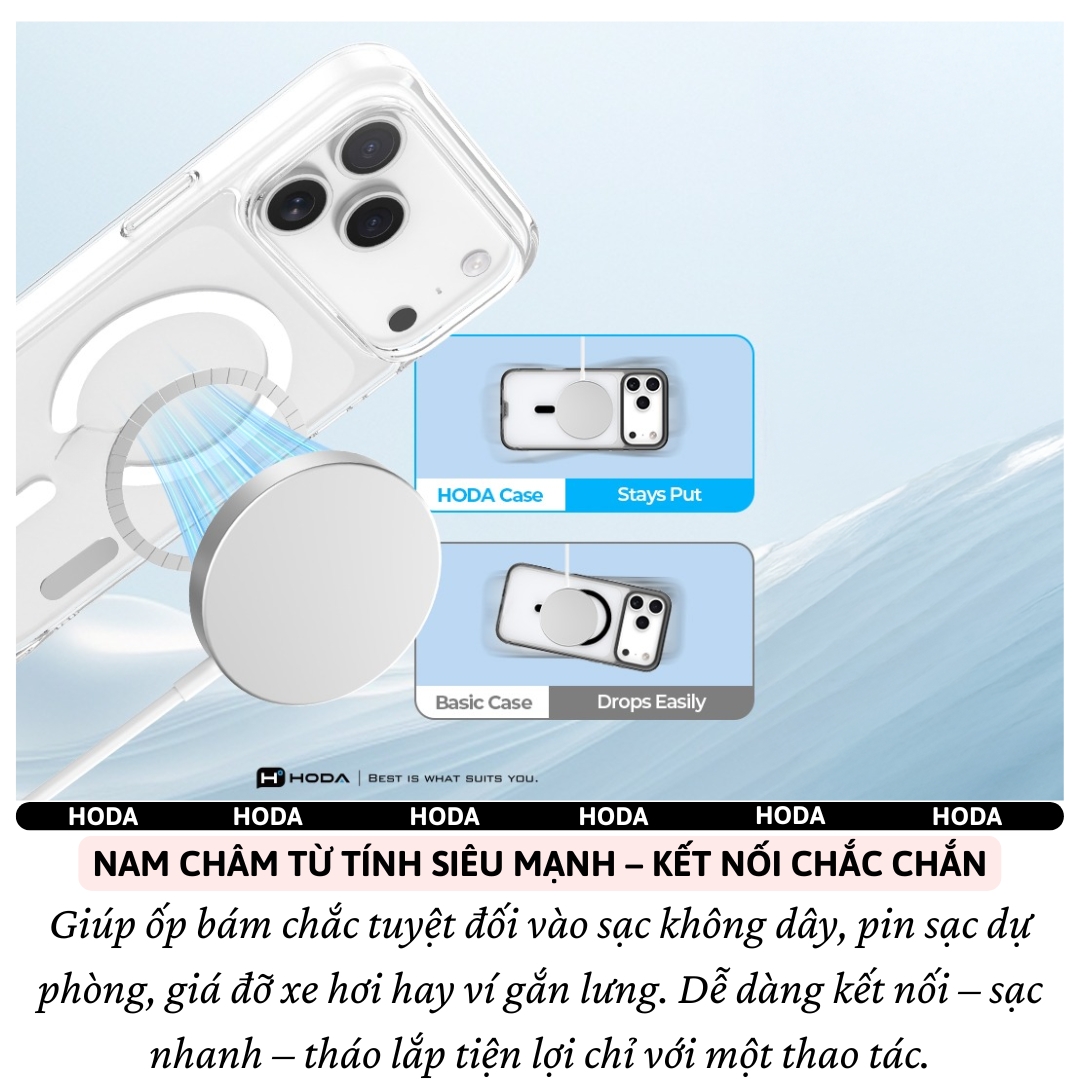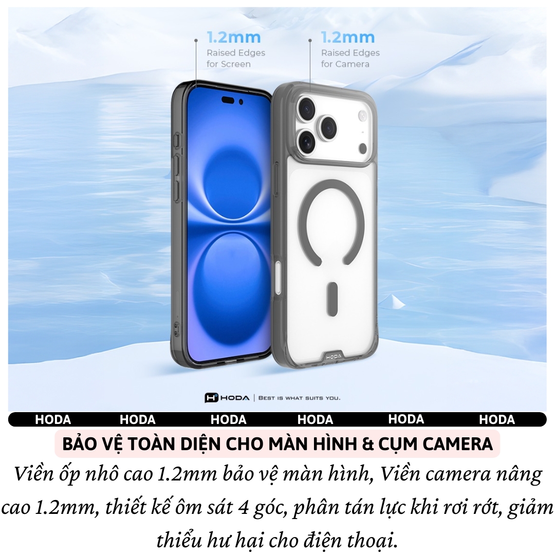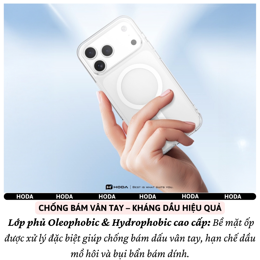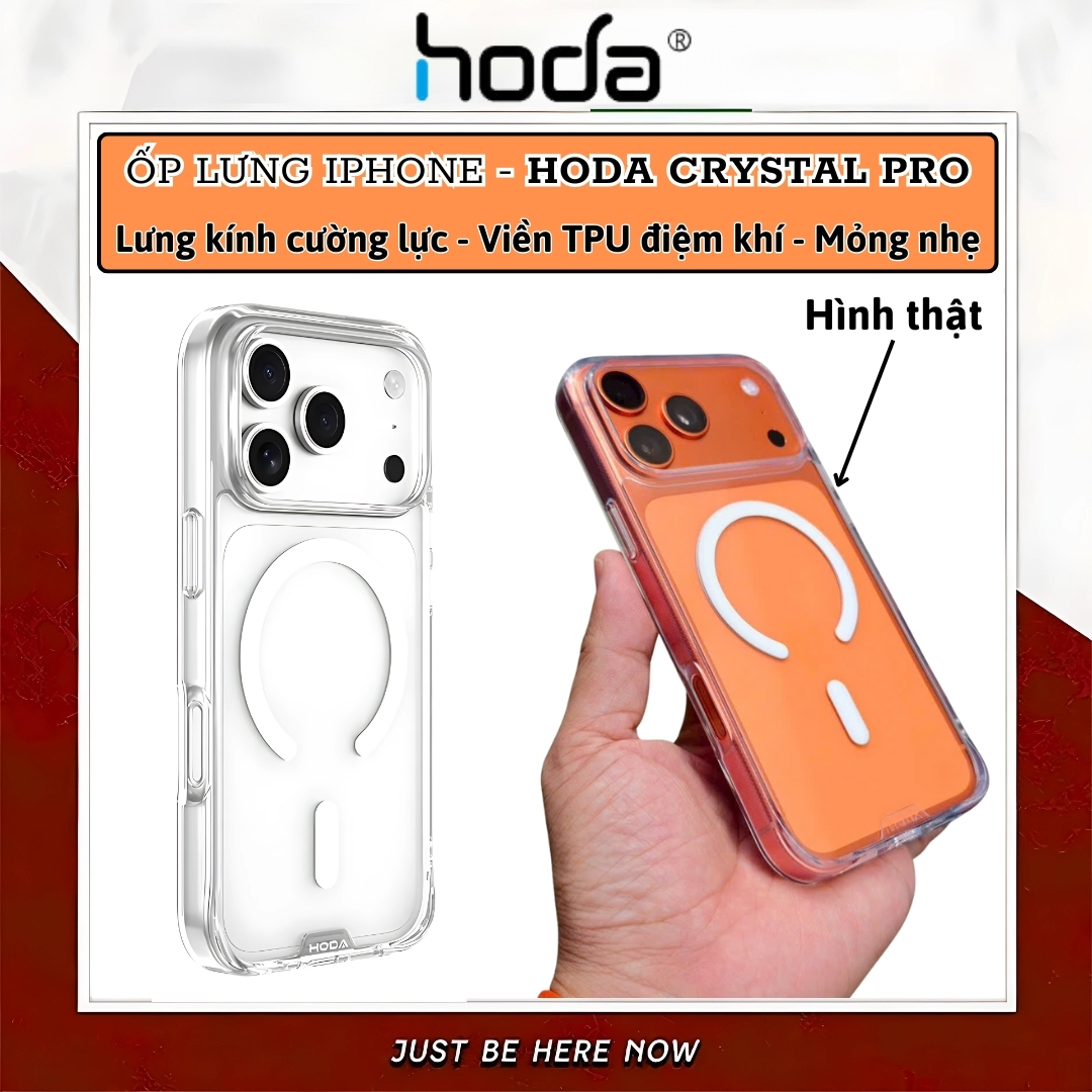 ỐP LƯNG KÍNH CƯỜNG LỰC TỪ TÍNH HODA CHO IPHONE 16 PRO / 16 PRO MAX / 17 AIR / 17 PRO / 17 PRO MAX Siêu Bền – Siêu Trong – Bảo Vệ Toàn Diện – Kết Nối Magnetic Hoàn Hảo TÍNH NĂNG NỔI BẬT
