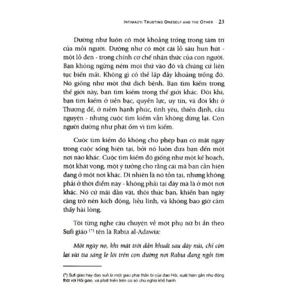 - Khát Khao Thân Mật: Mặc dù chúng ta sợ thân mật, nhưng con người lại có nhu cầu sâu sắc được kết nối với người khác. Osho nhấn mạnh rằng sự cô đơn sẽ khiến chúng ta cảm thấy lạc lõng, và chỉ qua sự gần gũi, yêu thương, và cởi mở, chúng ta mới có thể tạo dựng những mối quan hệ chân thành và sâu sắc.
