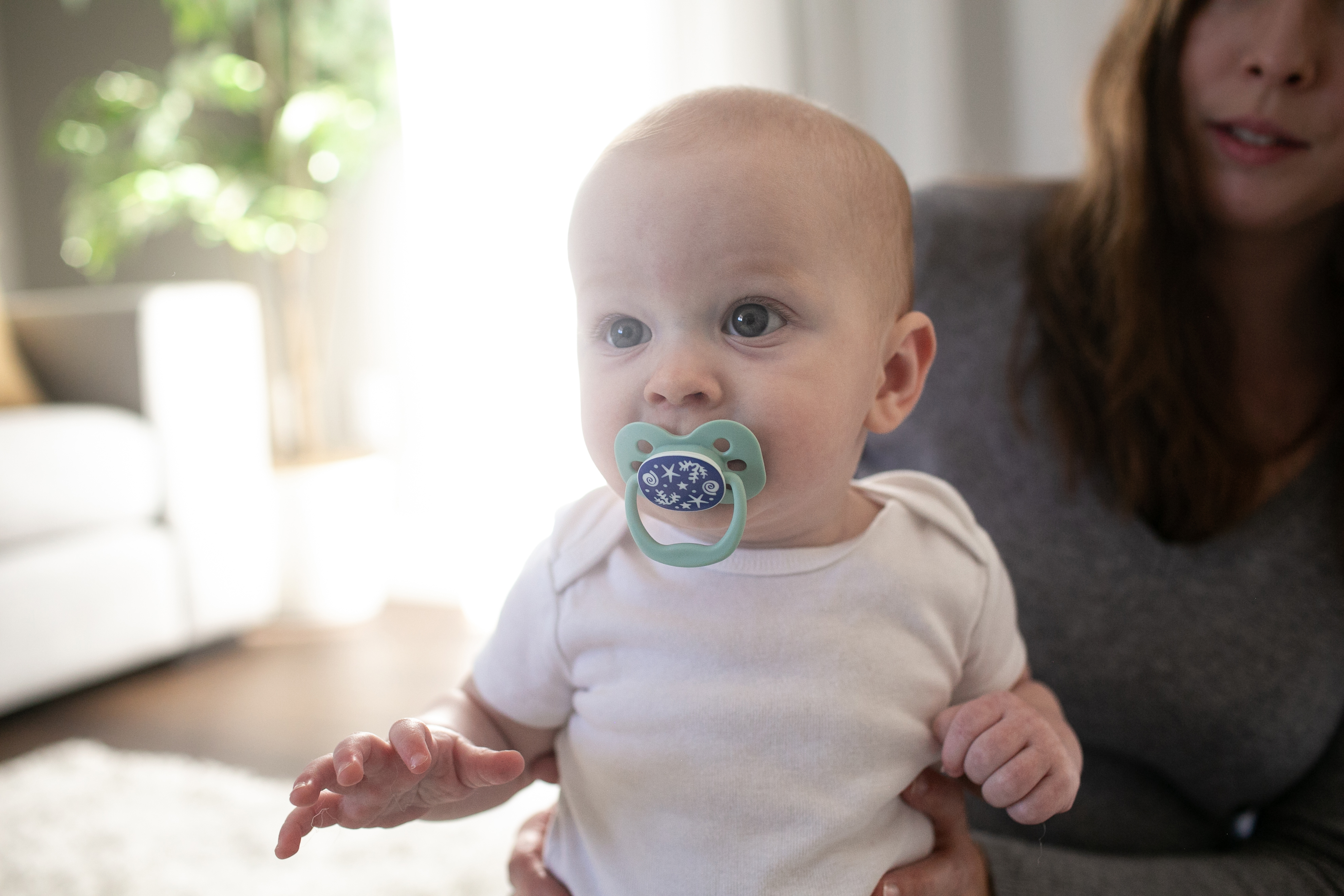 - Ty ngậm sẽ phát sáng trong bóng tối giúp mẹ dễ dàng tìm thấy khi cần