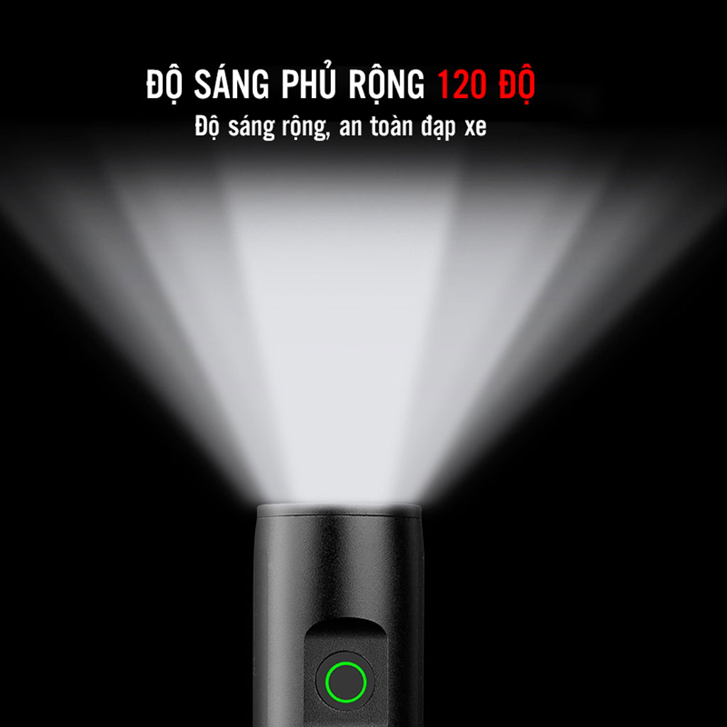 THIẾT KẾ SẢN PHẨM ĐÈN XE ĐẠP: - Không thấm nước, bảo vệ khỏi mưa gió, sương mù. - Sạc nhanh USB, sạc tiện lợi, tự động tắt, tránh mưa bụi xâm nhập. -
