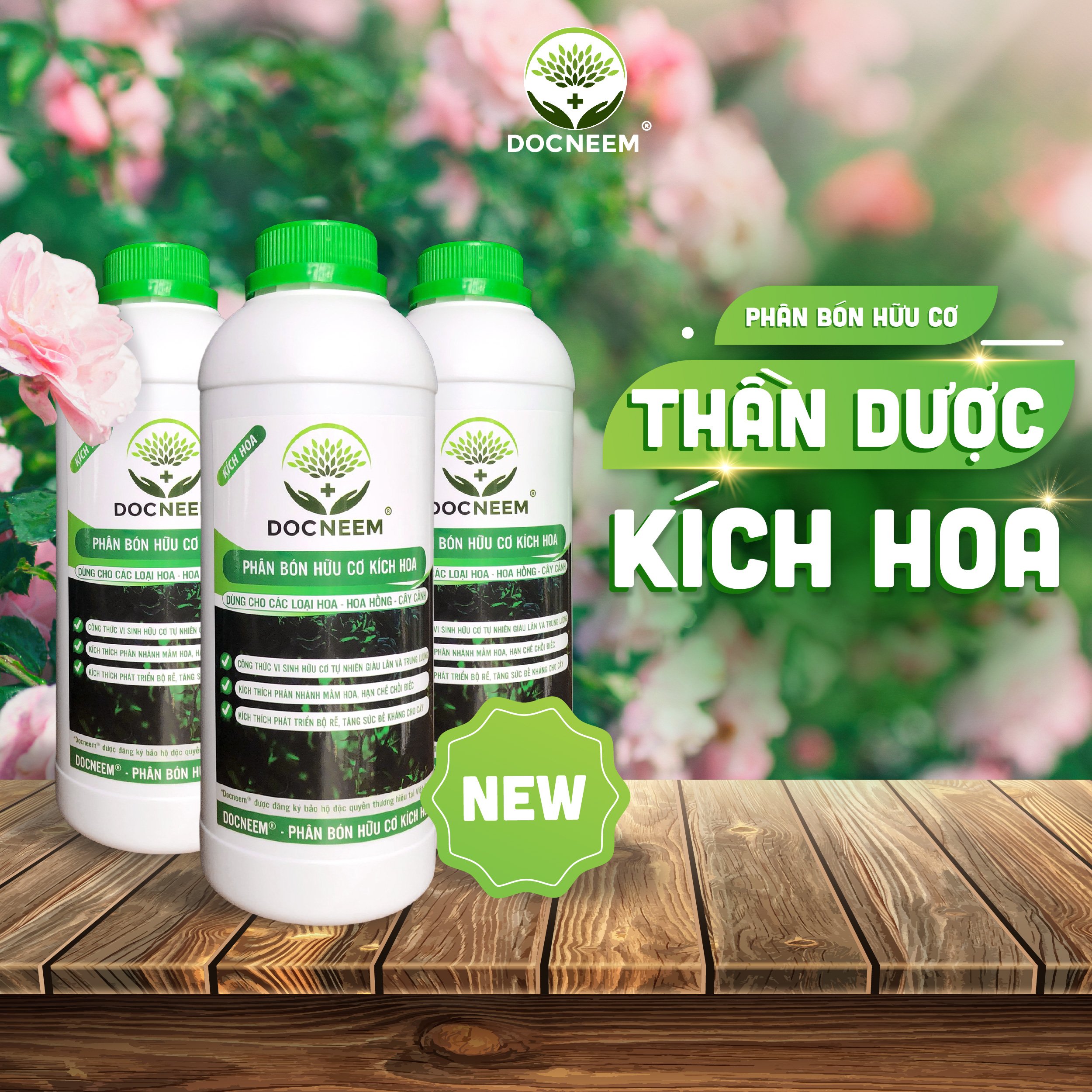 ✨Phân bón hữu cơ Kích Hoa cho Hoa hồng, Hoa lan, cây cảnh, cây kiểng trong nhà và ngoài trời, giàu lân giúp phân nhánh nụ, hoa, giảm chồi điếc, dung tích 1 lít, chính hãng DOCNEEM