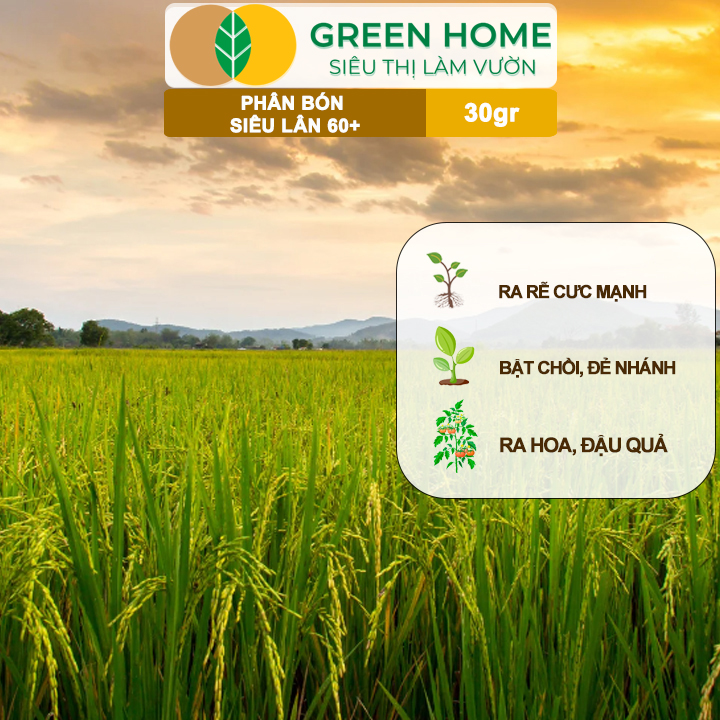 ✨Phân Bón Lá Greenhome, Siêu Lân 60+, Gói 30gr, Phát Triển Rễ, Tạo Mầm Hoa, Kích Ra Hoa