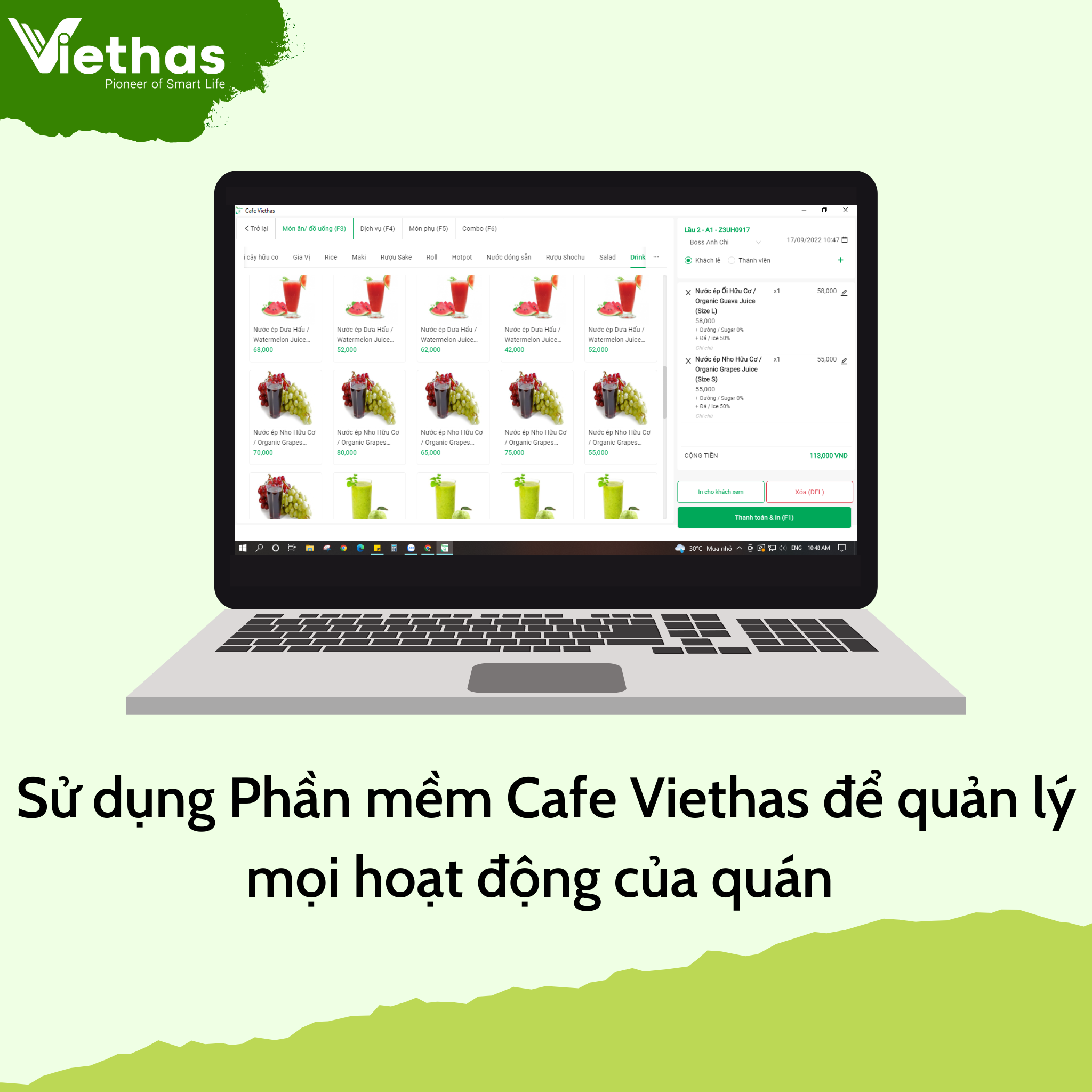 Phần mềm quản lý nhà hàng, cafe chuyên nghiệp Viethas phí chỉ 2000đ/ngày
