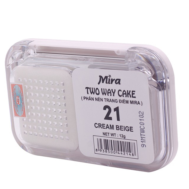 Trọng lượng: 12g Phấn nén trang điểm MIRA Two way cake - Phấn trang điểm MIRA two way cake được chiết xuất từ thực vật và các hoạt chất có trong tự nhiên, tạo nên các hạt phấn cực mịn, với độ bám dính cao, hạn chế tối đa sự tiết bã nhờn, làm cho da trắng tự nhiên.