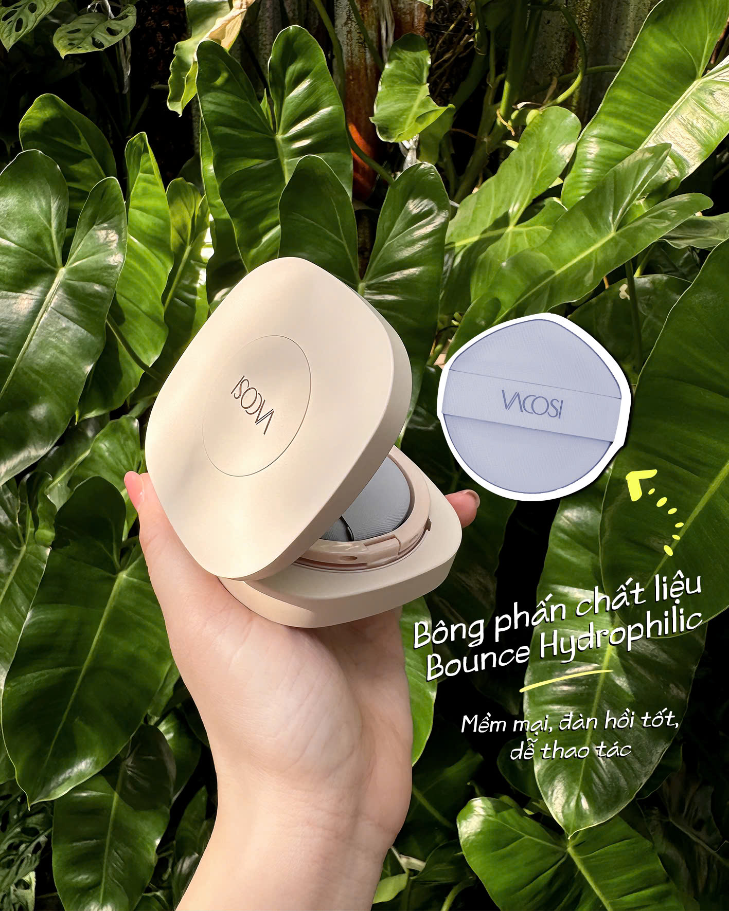+/+++ Phấn Cushion VACOSI được thiết kế tối giản trang nhã và đẹp mắt. Công thức được cải tiến trên nền , mang đến lớp nền không tì vết, giữ màu suốt 24h. Với