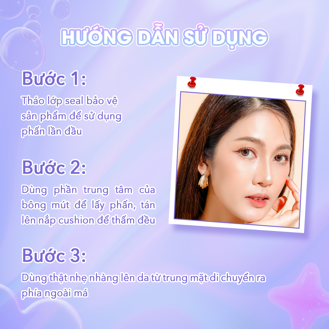 - Bước 2: Dùng bông mút lấy phấn, tán nhẹ trên nắp cushion để phấn thấm đều.