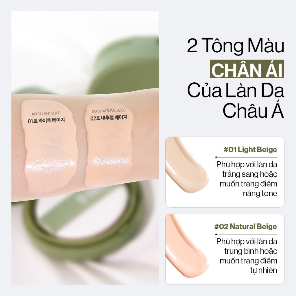 Phấn nước thuần chay, chứa thành phần thiên nhiên vừa trang điểm vừa chăm sóc da, phù hợp với những đối tượng bận rộn hoặc thích làm đẹp chỉ với một bước đơn giản. Kết