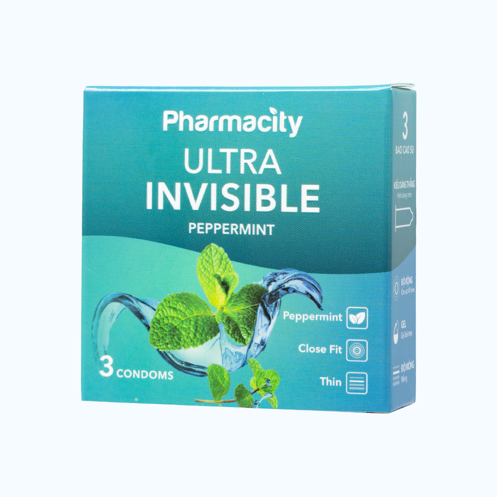 ✨Pharmacity Bao cao su Ultra Invisible hương bạc hà siêu mỏng (3 cái/hộp)