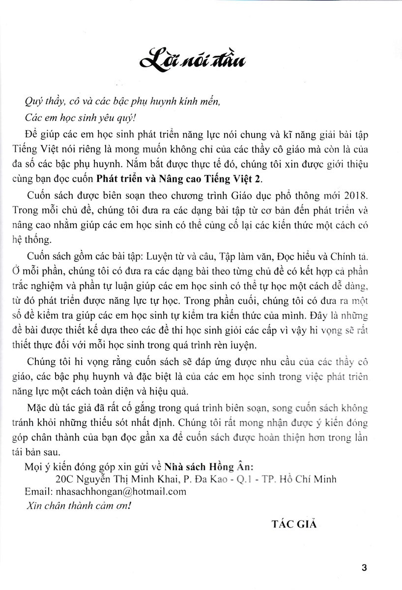 Cuốn sách được biên soạn theo chương trình sách giáo khoa Tiếng Việt lớp 2, trong mỗi tiết học, chúng tôi giới thiệu các dạng bài tập tương ứng với từng nội dung kiến thức được phát triển và nâng cao từ các dạng bài tập có trong sách giao khoa.