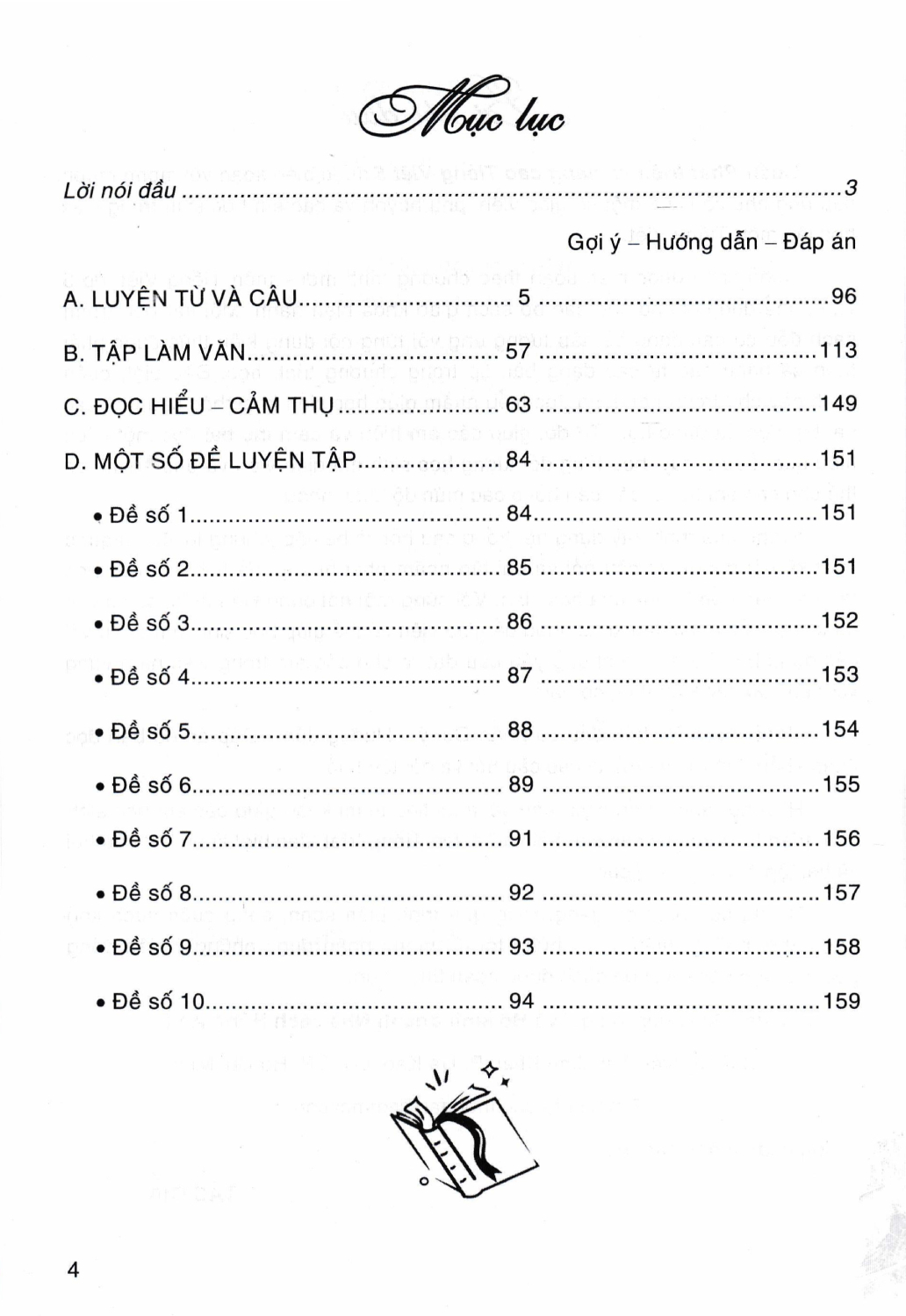 Hi vọng rằng, cuốn sách này sẽ là tài liệu tham khảo giúp các em học sinh phát triển kĩ năng giải các câu hỏi và bài tập Tiếng Việt, đặc biệt là những câu hỏi và bài tập ở dạng nâng cao.