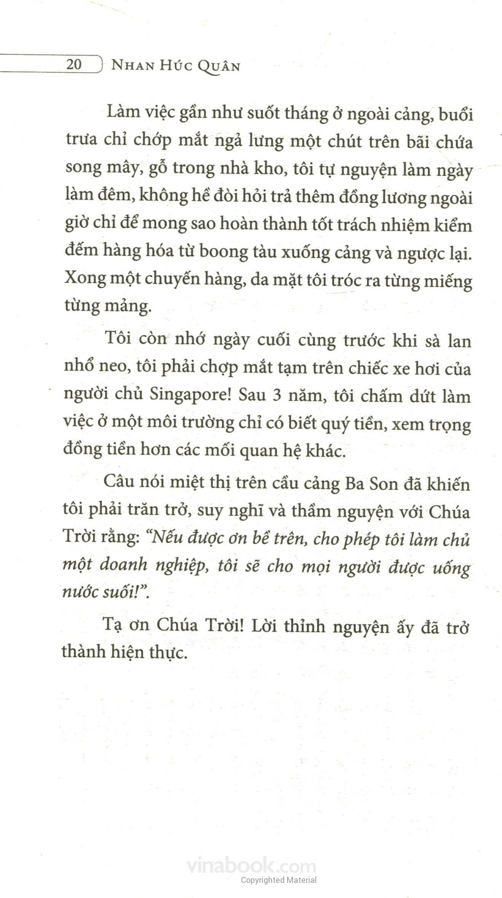 Tác giả Nhan Húc Quân chia sẻ: “Ước mơ chỉ có thể thành hiện thực khi trái tim bạn đã cảm nhận hoặc tìm thấy niềm đam mê trong lĩnh vực mà mình yêu thích; hoặc trong công việc hằng ngày của chính mình. Các bạn hoàn toàn có quyền hy vọng và đặt niềm tin vào sự đam mê chính đáng của mình bằng lòng quả cảm, thái độ nghiêm túc, chính chắn trong suy nghĩ, sự chăm chỉ, nhiệt huyết và tính kiên định cộng với khả năng thực hành của chính bản thân. Biết chọn cách sống tử tế, đàng hoàng với những người xung quanh thì cuộc sống sẽ luôn mỉm cười với bạn. Và bạn sẽ thong dong, khoan thai bước tiếp những con đường rộng mở ở phía trước…” Với riêng các độc giả nữ chị còn nhắn nhủ: “Tôi còn nhớ năm học lớp 5, cô giáo dạy học sinh nữ rằng: “Sau này trưởng thành, các em phải có 50% sự nhu mì, tỉ mỉ của phụ nữ và 50% còn lại phải có sự can đảm, dũng cảm của người đàn ông”. Lúc đó, tôi rất tâm đắc và thích thú lời nói này. Và bây giờ, tôi hài lòng vì đã làm được điều đó. Hy vọng các bạn cũng vậy”.