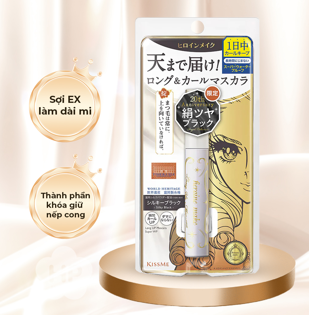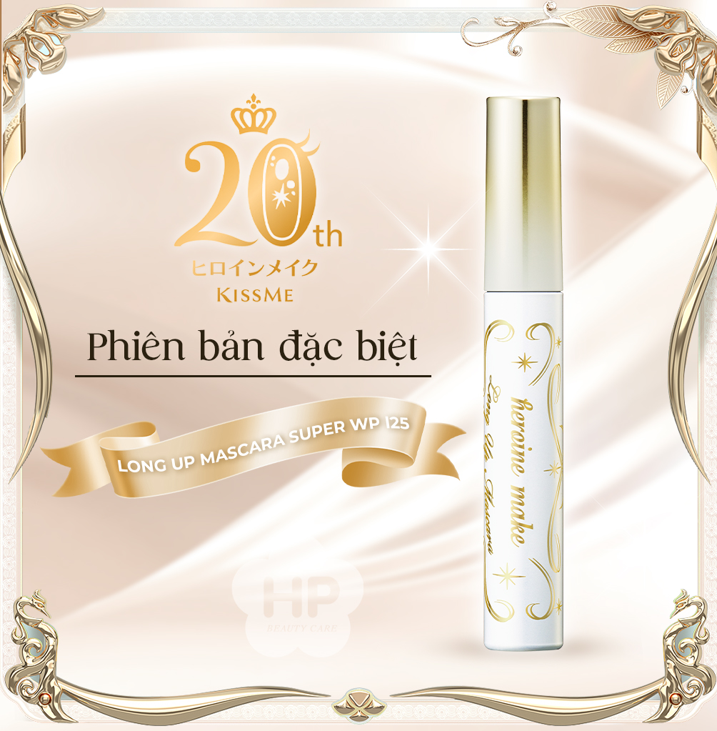MASCARA NÂNG CAO KISSME HEROINE MAKE NÂNG CONG VÀ DÀI MI TỐI ĐA - SIÊU BỀN TRONG 24H (MÀU ĐEN MƯỢT) PHIÊN BẢN ĐẶC BIỆT KISSME HEROINE MAKE LONG UP MASCARA SUPER WP L25 Số Lô: In trên sản phẩm Khối lượng tịnh: 6 g Mã Vạch: 4901433040730 Xuất Xứ: Nhật Bản Mascara Màu Đen Mượt chiết xuất từ Nhân sâm Panax, Sữa ong chúa, Hoa trà, Nụ tầm xuân, “SỢI EX LÀM DÀI MI“, thành phần “KHOÁ GIỮ NẾP CONG” giúp lập tức Khóa giữ Nếp Cong và kéo DÀI MI TỐI ĐA (Lên Đến 5mm). Ngoài ra còn cung cấp dưỡng chất dưỡng làn mi, tránh tình trạng cay mắt, rụng mi, nhăn vùng mí mắt khi sử dụng. Đặc biệt Đầu chải Mascara siêu mịn giúp chống cọ sát, gây khó chịu khi sử dụng. Công Dụng: Sản phẩm giúp trang điểm cho lông mi, giúp làm cong và làm đẹp cho lông mi. Cách dùng: Dùng đầu chải Mascara vuốt ½ Đuôi mi rồi đến ½ Đầu mi còn lại (vuốt theo hướng ra ngoài). Lặp lại các bước đến khi Làn mi có độ DÀI và CONG phù hợp NÊN LẮC ĐỀU TRƯỚC KHI SỬ DỤNG LAU SẠCH ĐẦU CỌ VÀ ĐÓNG NẮP SAU KHI SỬ DỤNG. Thành Phần: Isododecane, Trimethylsiloxysilicate, Talc, Microcrystalline Wax, Ceresin, Disteardimonium Hectorite, Dextrin Palmitate/Ethylhexanoate, Hydrogenated Polyisobutene, CI 77499, Propylene Carbonate, Synthetic Fluorphlogopite, Nylon-66, Sucrose Tristearate, Aluminum Distearate, Trimethylsiloxysilylcarbamoyl Pullulan, Glyceryl Isostearate, Silk Powder, Zinc Laurate, Squalane, Silica, Argania Spinosa Kernel Oil, Camellia Japonica Seed Oil, Polymethylsilsesquioxane, Prunus Amygdalus Dulcis (Sweet Almond) Oil, Rosa Canina Fruit Oil, Titanium Dioxide, Acrylates/Ethylhexyl Acrylate Copolymer, Ammonium Acrylates Copolymer, Hydroxyethyl Acrylate/Methoxyethyl Acrylate, Copolymer, Dimethicone, Panax Ginseng Root Extract, Royal Jelly Extract, Sodium Dehydroacetate.