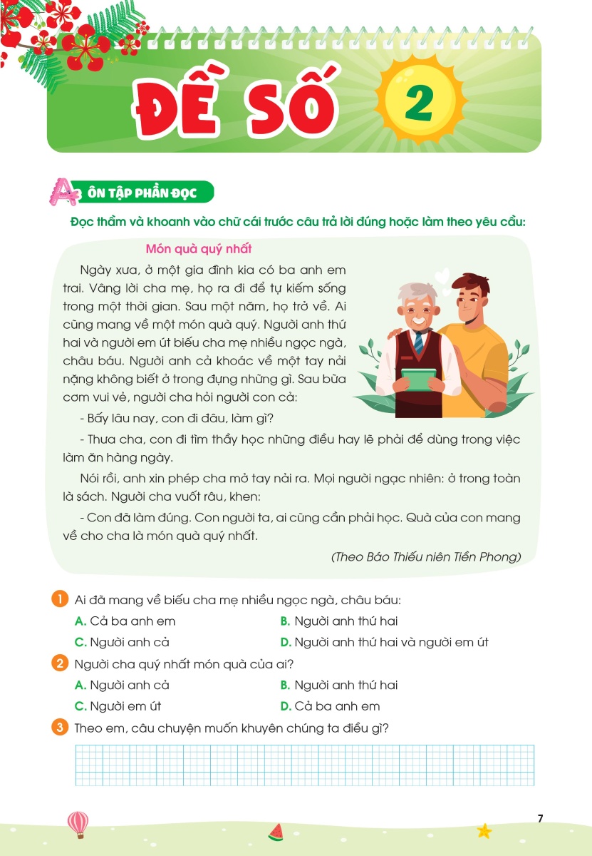 Cuốn sách “Đề kiểm tra Tiếng Anh 4” là một tài liệu cần thiết cho các em trong việc ôn tập và củng cố kiến thức để chuẩn bị cho các bài kiểm tra đánh