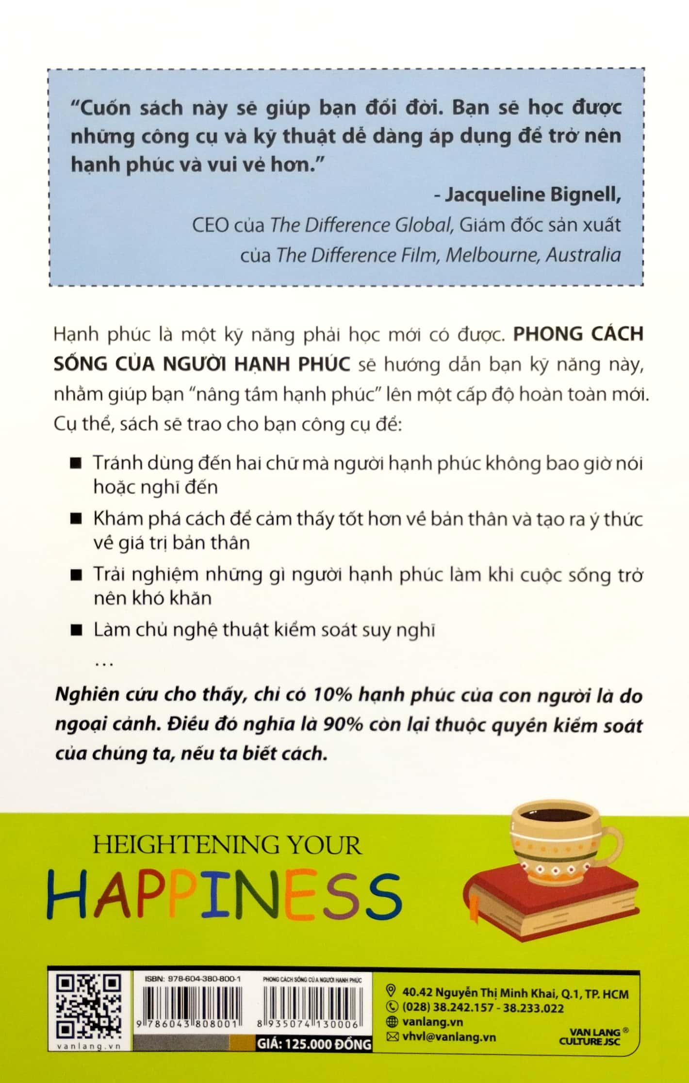 Hạnh phúc là một kỹ năng phải học mới có được. PHONG CÁCH SỐNG CỦA NGƯỜI HẠNH PHÚC sẽ hướng dẫn bạn kỹ năng này, nhằm giúp bạn “nâng tầm hạnh phúc” lên một cấp độ hoàn toàn mới.