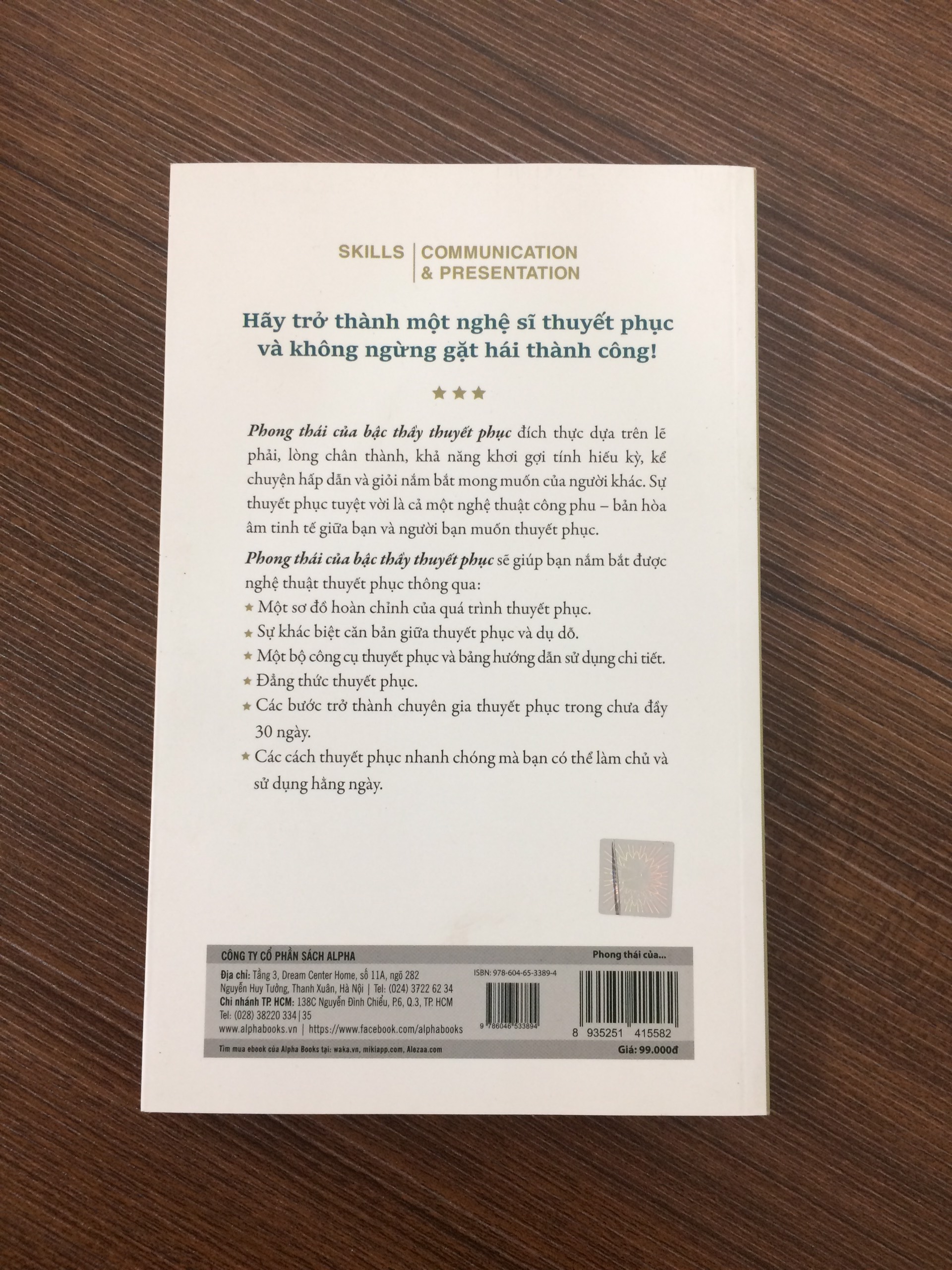 Trong Phong thái của bậc thầy thuyết phục, bạn sẽ tìm thấy: Sự khác biệt căn bản giữa thuyết phục và dụ dỗ. Một sơ đồ hoàn chỉnh của quá trình thuyết phục. Một bộ công cụ thuyết phục và bảng hướng dẫn sử dụng chi tiết.
