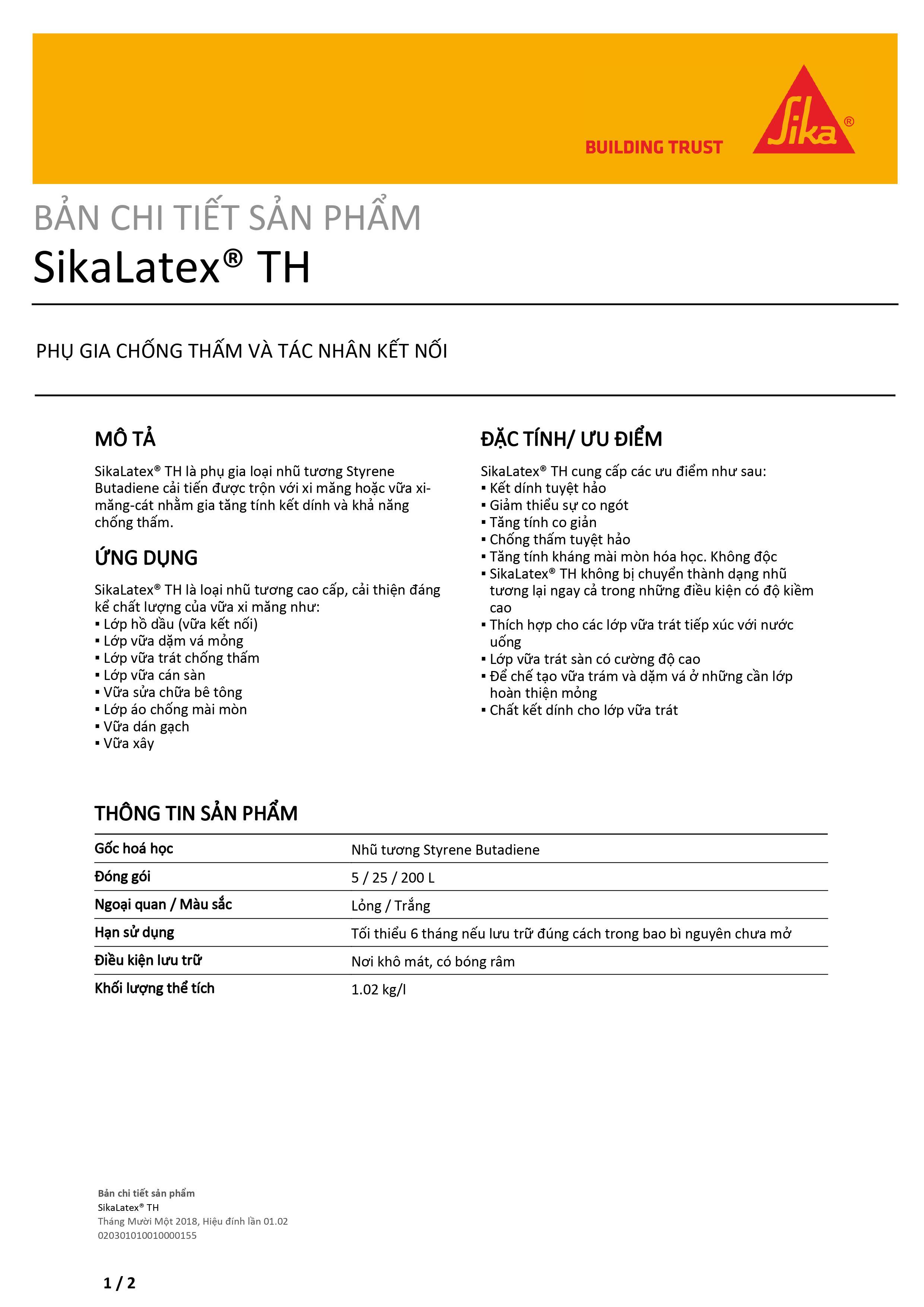 SikaLatex và SikaLatex TH Phụ gia chống thấm và tác nhân kết nối