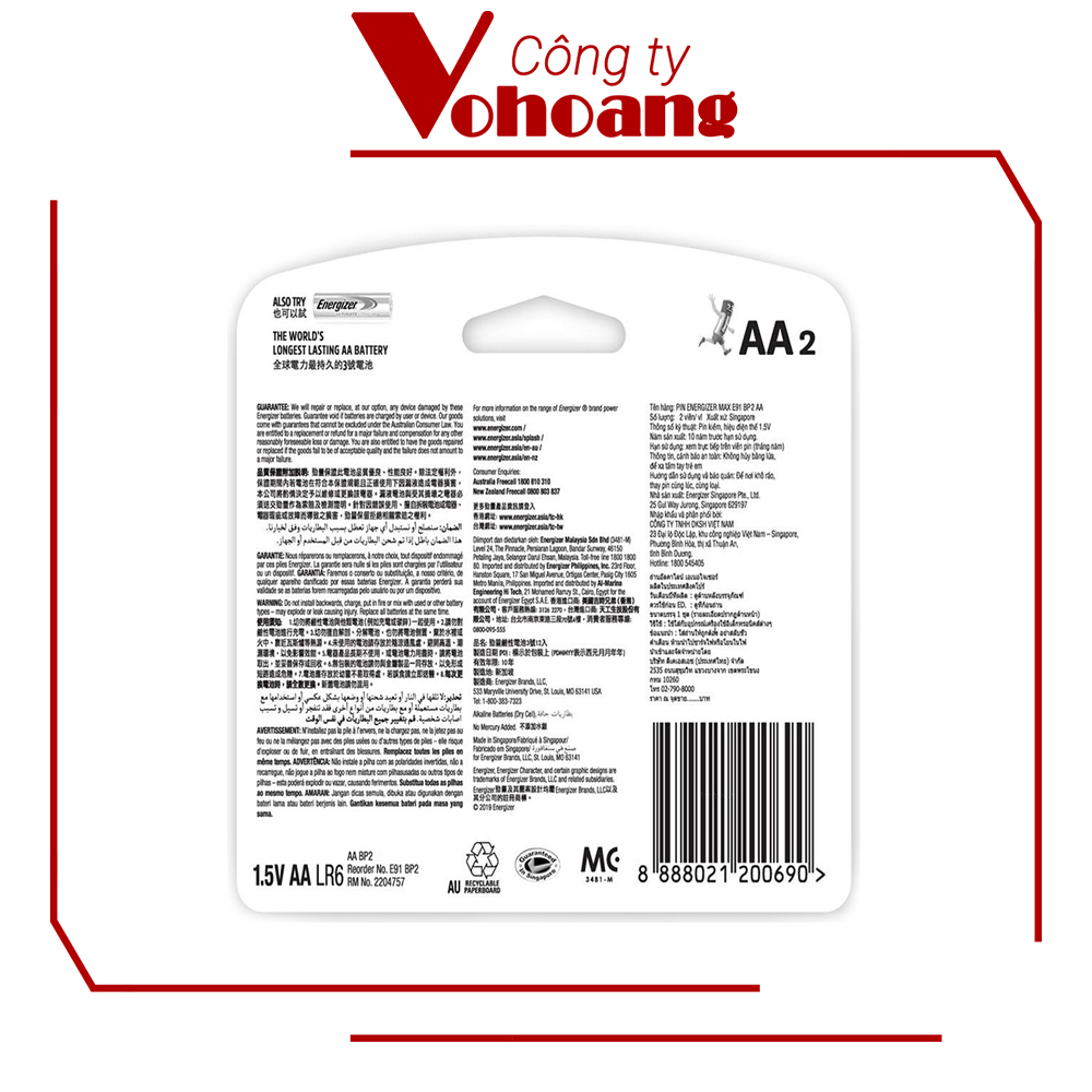 - Pin đạt chứng chỉ TUV. Một chứng chỉ cao nhất về chất lượng của thị trường Châu Âu - Dung lượng cam kết : 2100mAh cho mỗi viên. Một vỉ có 2 viên Pin