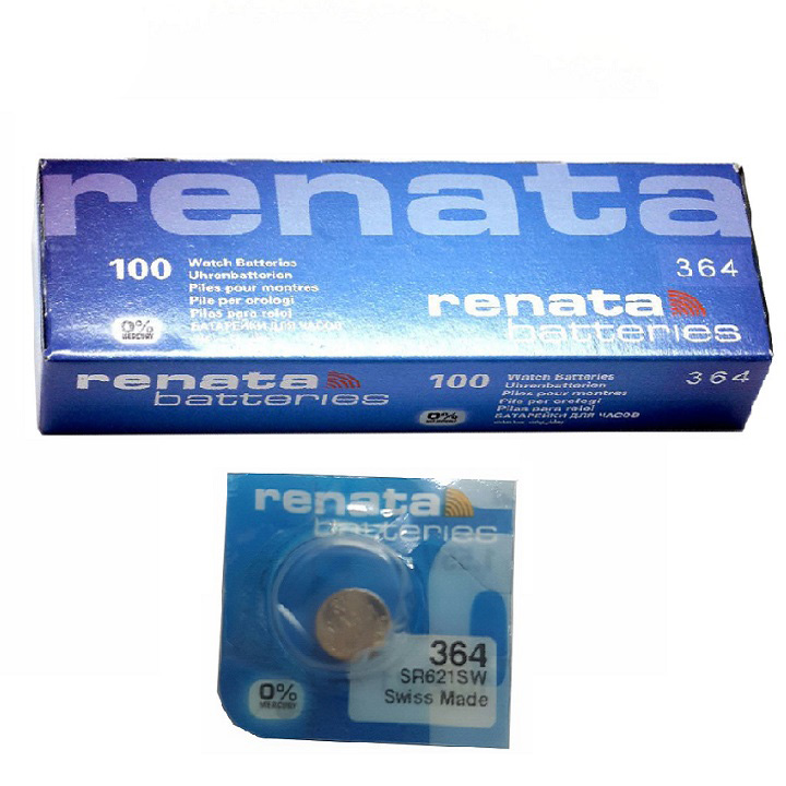 Pin renata thụy sỹ mã 364-SR621SW sử dụng cho đồng hồ hoặc các thiết bị điện tử , có thể sử dụng để thay thế pin của các hãng khác. Pin thay thế được cho các mã pin: 364, AG1, LR621, 602, 280-34, GP64, SR620SW, RW320, 51, 31, SB-DG, SB-AG, T, W1V, D1V, 531, SR60, GS1, SG1, S14 Mã pin SR được quy định đánh dấu pin là loại pin oxit bạc có dung lượng pin cao và độ ổn định điện áp tốt. Được phân biệt với các loại pin kiềm mã đầu LR hoặc AG có dung lượng pin thấp và điện áp đầu ra giảm dần khi sử dụng.